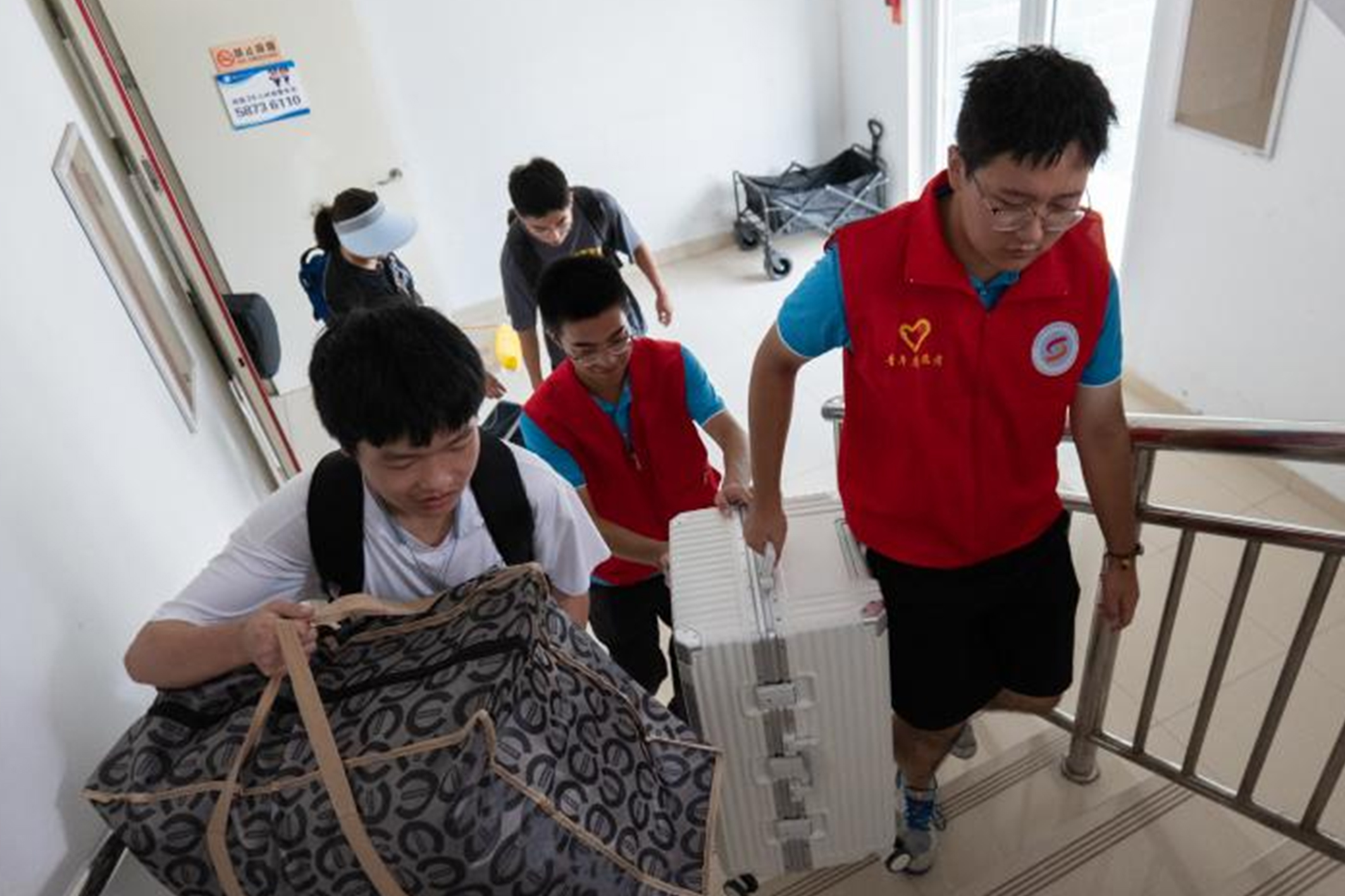 电信院院长张治中、党委书记张明菊深入迎新现场,详细了解报到实时进展情况和各项服务保障工作,慰问参加迎新工作的老师和志愿者们,感谢他们的辛勤付出和细致服务。学院领导还走进新生宿舍看望新生,与已经报到入住的新生们亲切交流,了解他们对学校的印象、生活的需求以及大学规划等想法,鼓励他们尽快适应大学生活,积极参加学校各种活动、发奋学习,为美好的大学生活开好局、起好步。
