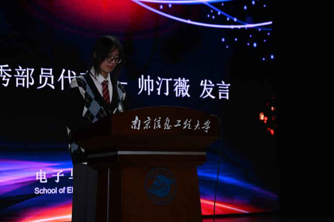 会上,外联部副部眭李阳、宣传部部员帅汀薇分别作为优秀副部代表和优秀部员代表发表了获奖感言,眭李阳表示非常感谢学院团学组织给予自己提升综合素质能力的机会,接下来会坚持’敢’字当头、不躺平,在团学工作中不推诿、不敷衍,不怕吃苦受累,工作勤奋,做事扎实。敢于打破固守常规,把寻常工作做到有亮点、有特色。帅汀薇表示将在以后的时间里用创新思维对待工作,做好自己,肩负责任,迎难而上,弘扬脚踏实地、奋勇向前的菁英人才精神。
