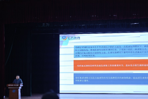 云天教育负责人姚来向同学们详细介绍了考研复试的相关内容。他强调,复试不仅考察学术能力,还需要具备一定的面试技巧与沟通能力。他详细分析了考研复试的考核内容,建议同学们要提前了解导师的研究方向和要求,做好充分的面试准备。此外,姚老师分享了丰富的调剂复试相关信息,提醒大家调剂工作要与时间“赛跑”,要充分收集调剂信息,并善于展示自身优势。