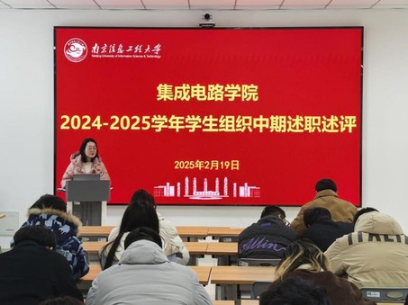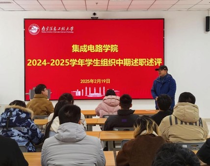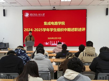 为全面总结学期工作进展,进一步提升学院团学组织的服务能力和水平,集成电路学院于2月19日下午在临江楼A101室召开了2024-2025学年学生组织中期述职述评会。学院党委副书记、副院长王康宏,学办主任金红出席会议,各团学组织主席参与述职,学院学生代表参与评议。会议由辅导员贾琪主持。