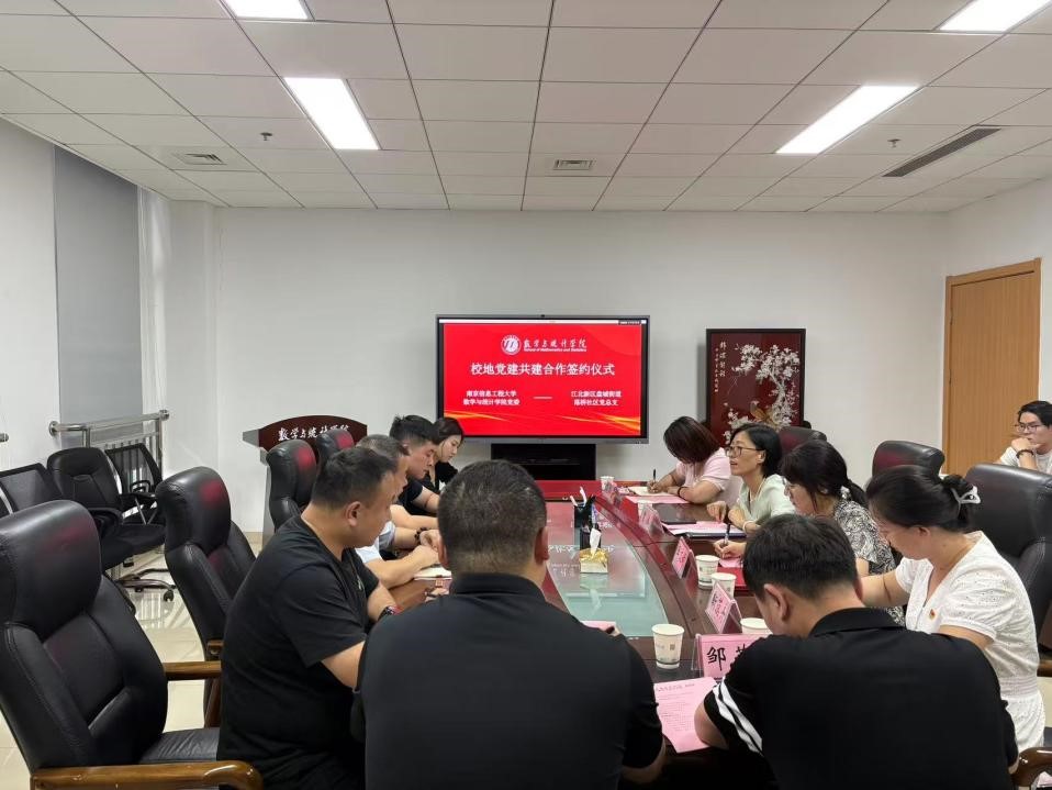 为深入贯彻落实新时代党的建设总要求,深化校地融合协同发展,9月19日,数学与统计学院党委与盘城街道落桥社区党总支正式签署党建共建协议。盘城街道办事处副主任李永浩、落桥社区党总支书记陈恩杰、数统院党委书记贾冰等出席共建座谈会。共建座谈会在藕舫楼629会议室举行党建共建座谈会。落桥社区副书记徐玮、副主任宗远蓓、余庭俊、邹荣胜,数统院院办主任王文婧、团委书记靳蕊卉、学办主任丁杰以及研究生党员代表参会。