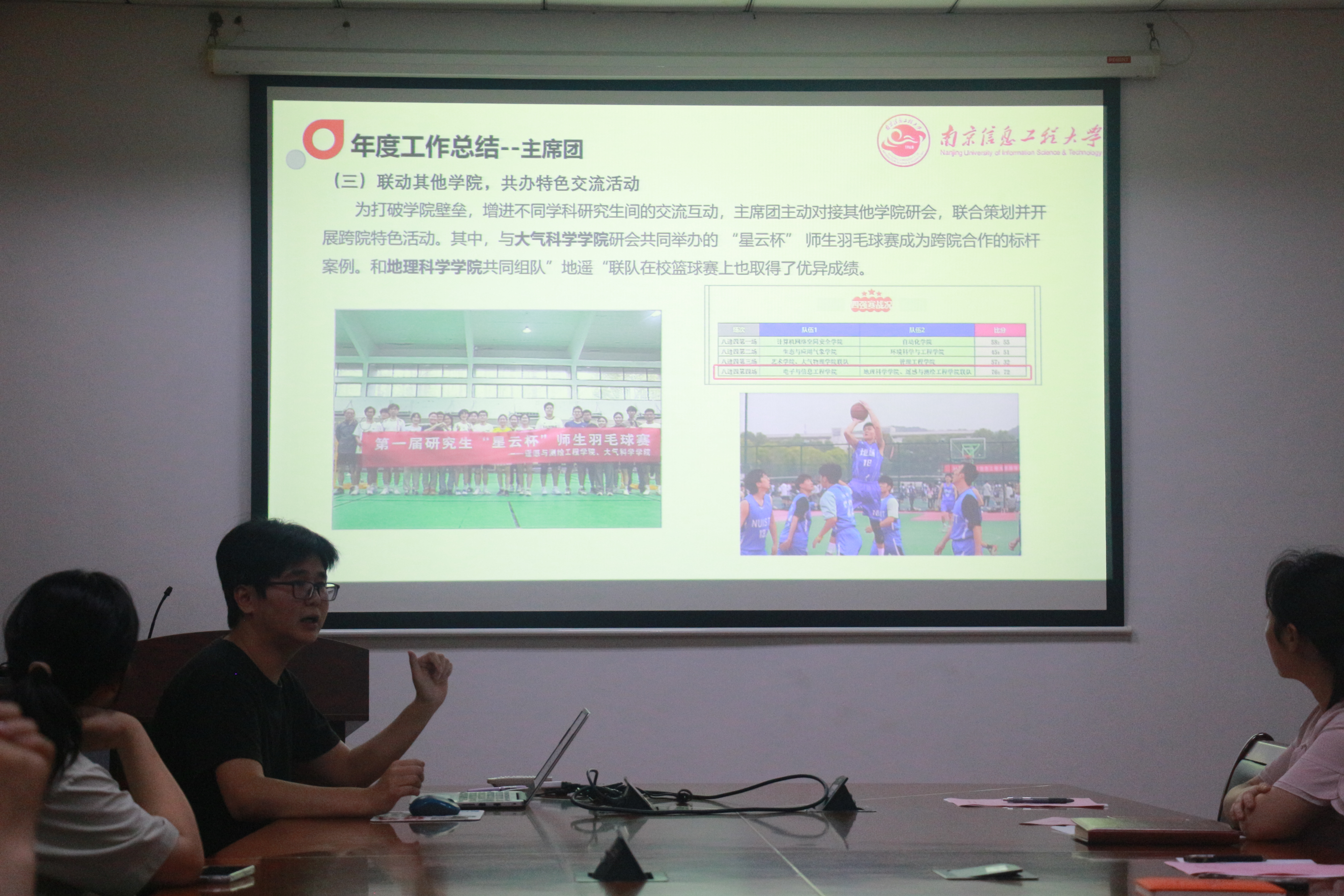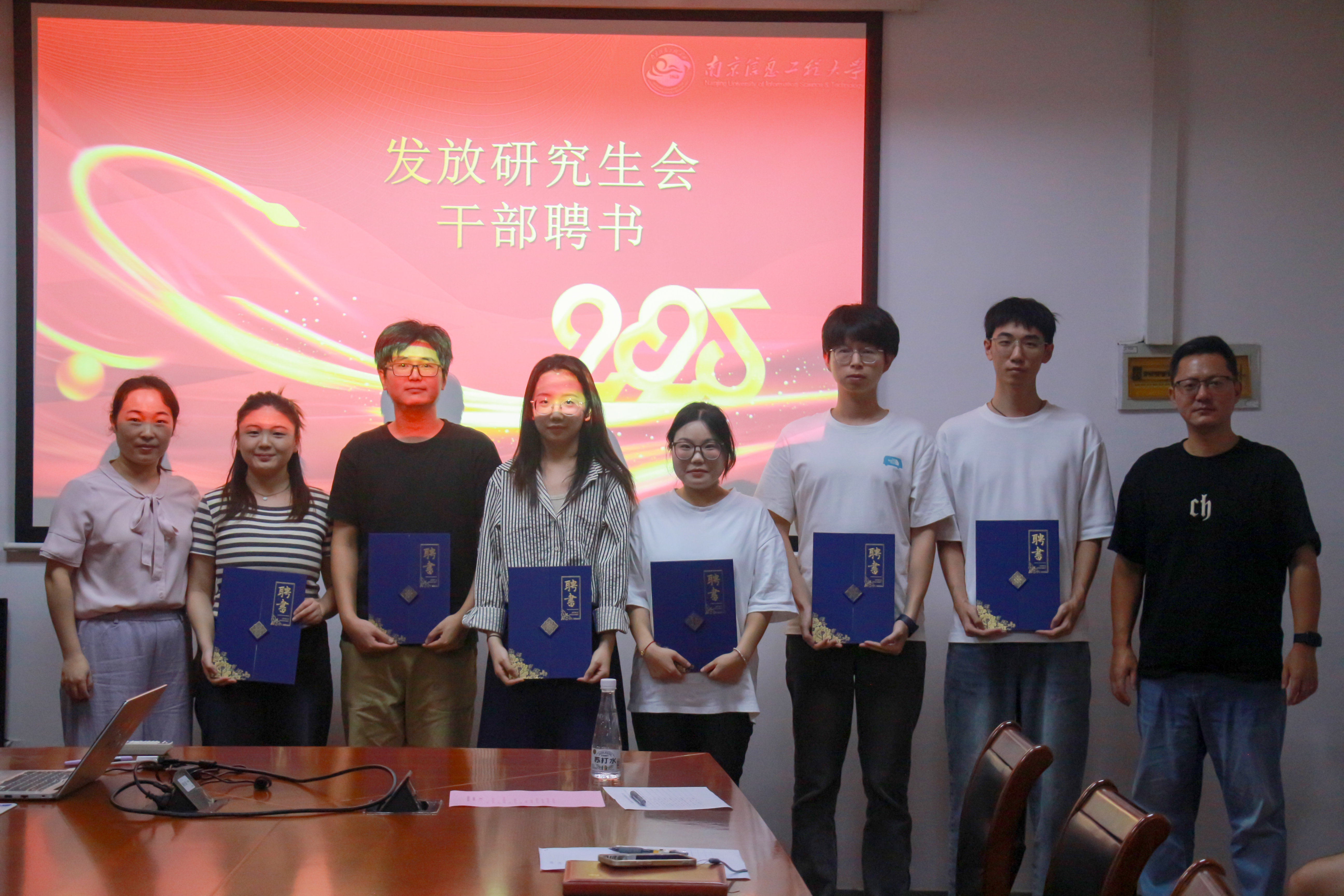 首先,辅导员郭亚林致辞,她对上一届研究生会成员的辛勤付出表示衷心感谢,并对新一届成员寄予了殷切期望。随后,上一届研会干部代表就各部门工作进行了详尽的总结汇报,并由两位辅导员老师为他们颁发了聘书。会议的核心环节是新一届候选人的竞选宣讲,8位候选人依次登台展示风采。最后,辅导员朱亚宾作总结发言,他对研究生会未来的发展提出了指导性意见。