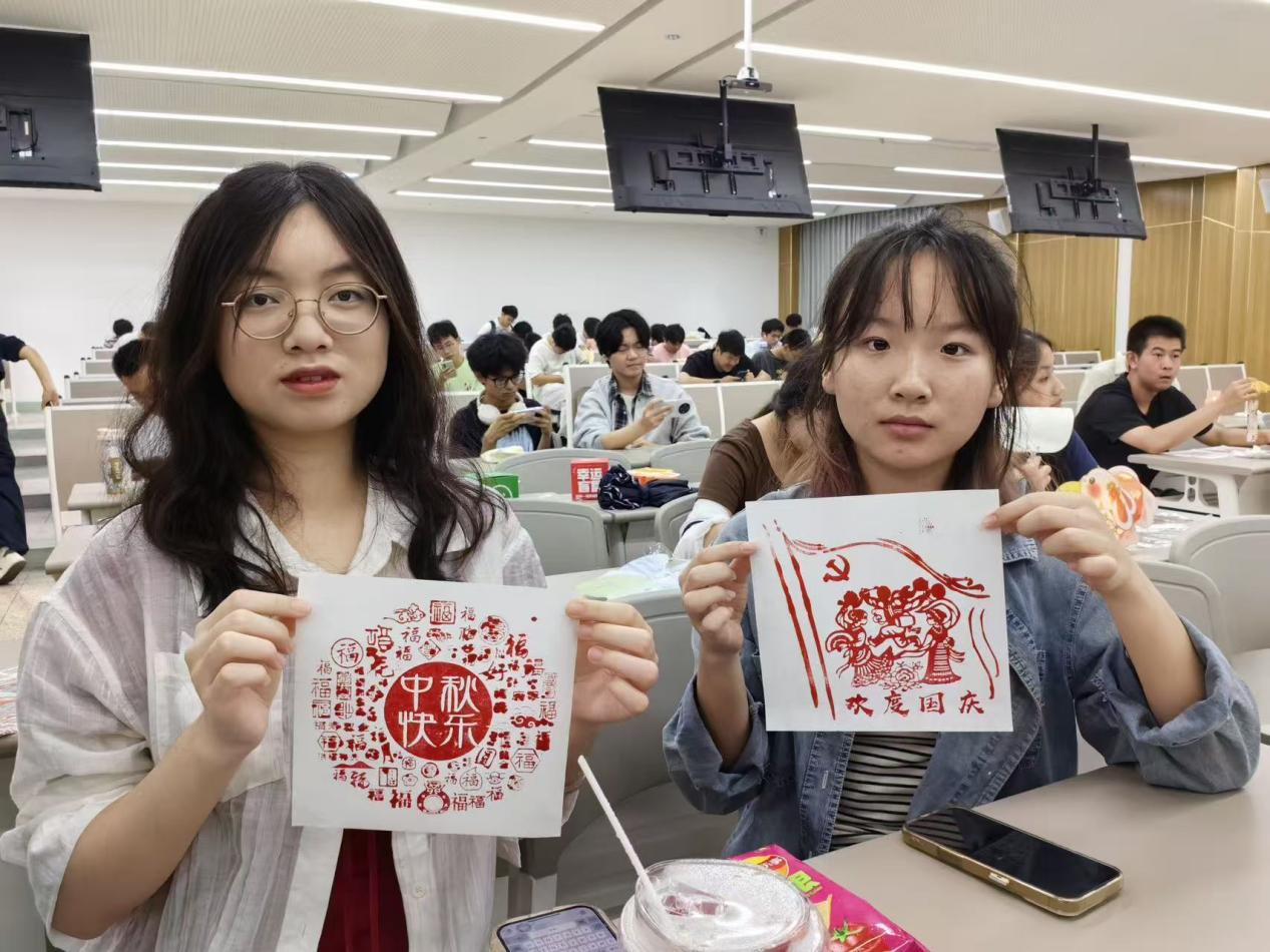 桂香漫校园,双节共欢腾。为传承中华优秀传统文化,深植家国情怀,让学子在古今融合的体验中感受传统节日魅力,近日,数学与统计学院在明德楼N215教室开展“金秋双节庆华诞,青春筑梦向家园”双节同庆趣味文化活动。活动以非遗技艺体验为核心,设置非遗拓印、月兔灯笼制作、漆扇创作三大趣味环节,吸引全院 150 余名同学积极参与,现场欢声笑语不断,更涌动着家国同心的炽热情感。