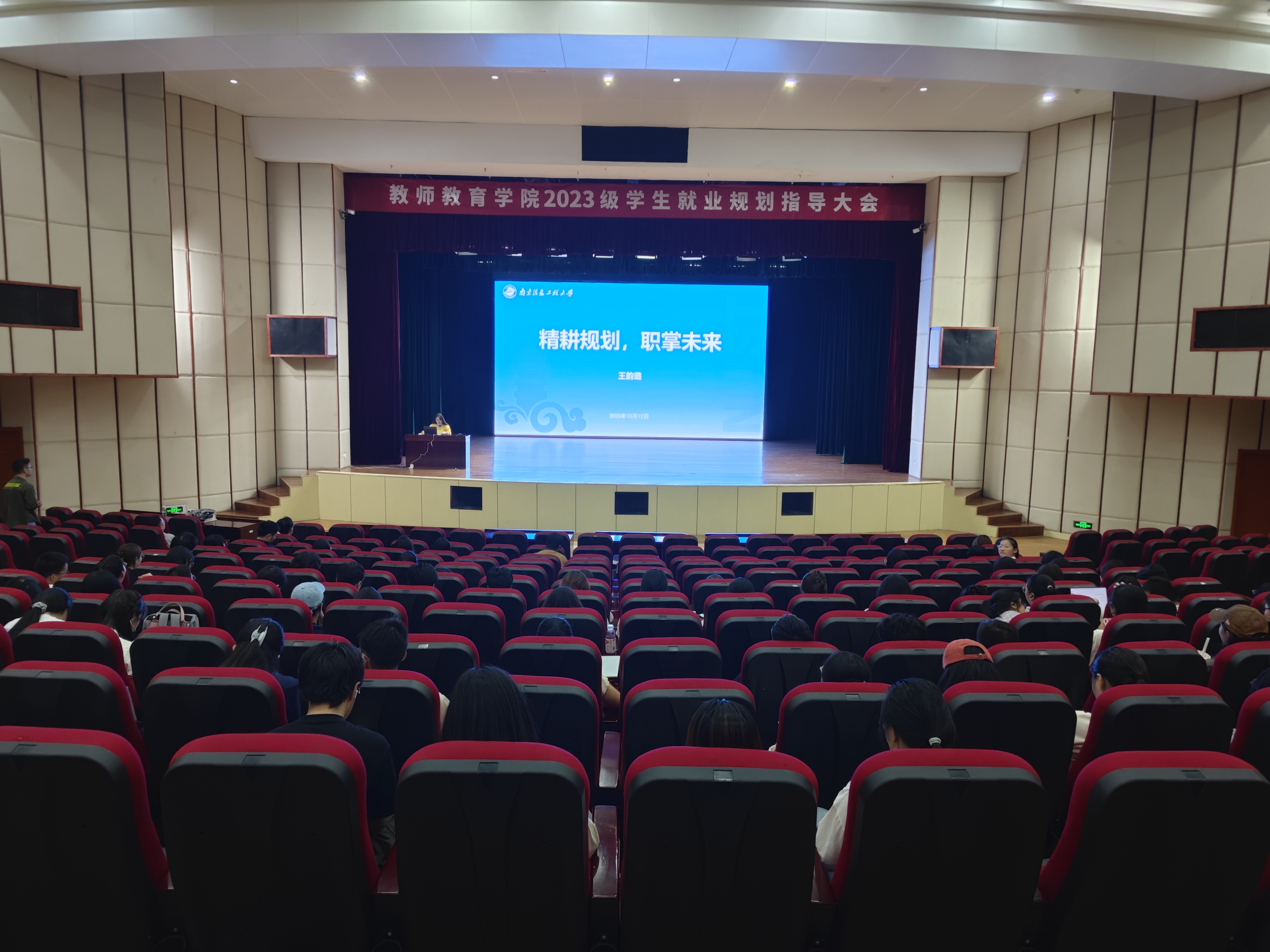 10月12日晚,教师教育学院在大学生活动中心成功召开2023级学生就业规划指导大会。面对当前日益严峻的就业形势,学院把就业动员关口前移至大三学期伊始,通过数据解读、经验传授、策略指导,引导学生早“定目标、稳心态、真行动”,也为学院构建“全过程就业育人”体系夯实基础。2023级全体本科生到场参会。