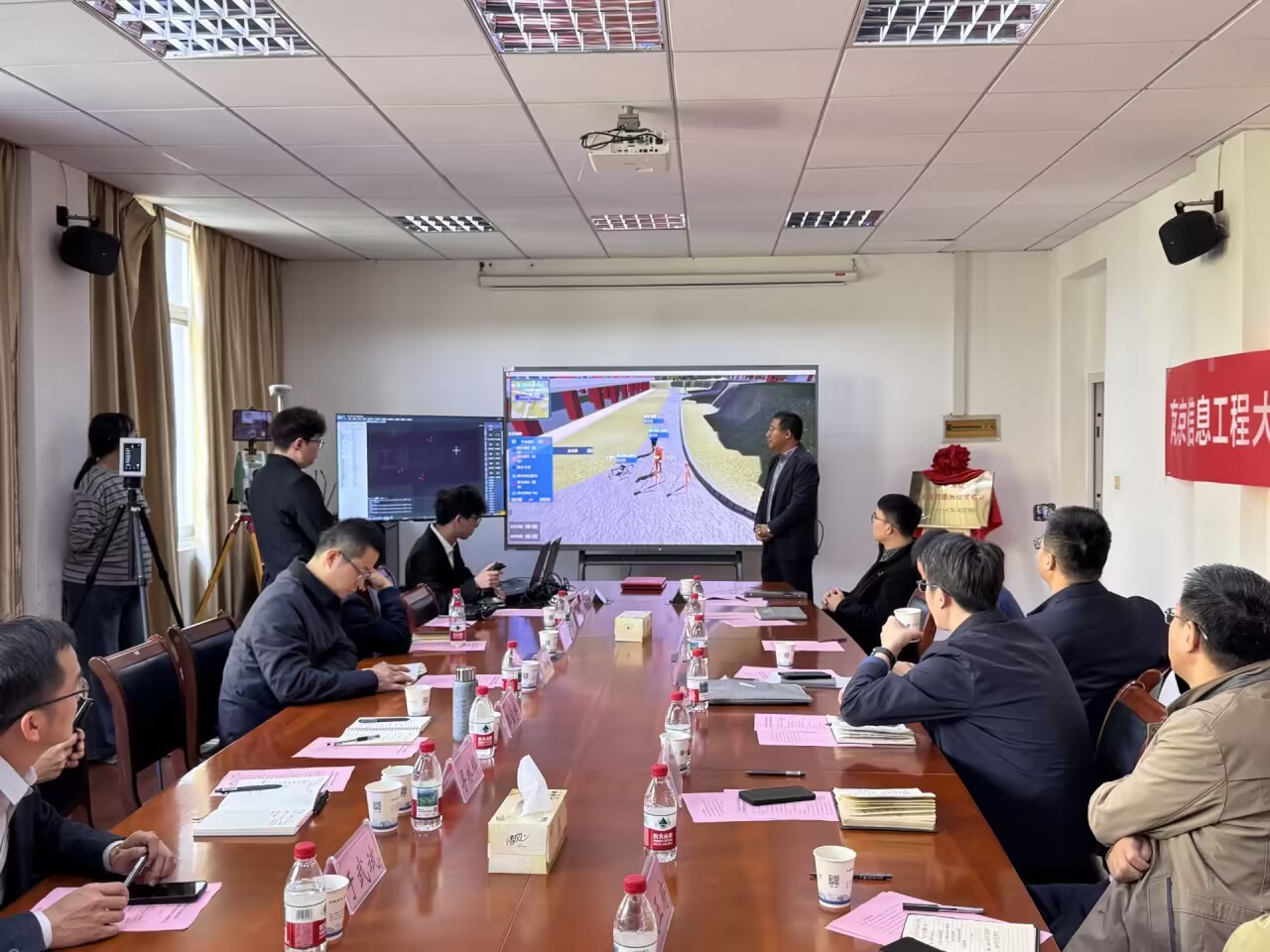 在与会人员的共同见证下,于江华与郭宝宇共同为实验室揭牌,刘超与袁大伟签署了实验室共建备忘录。随后,郭宝宇演示了元宇宙智能测绘实训系统功能,该系统运用场景孪生、设备孪生等技术,实现了真实测量仪器(如全站仪、三维激光扫描仪、无人机、GNSS接收机)与虚拟环境的实时联动,可在虚拟场景中完成从外业数据采集到内业数据处理的全流程实训,实现教学的智能化、信息化,并具有多感知、沉浸式、交互性、构想性等特点,且不受天气环境、地理位置等因素影响,能够显著提升实践教学效果。