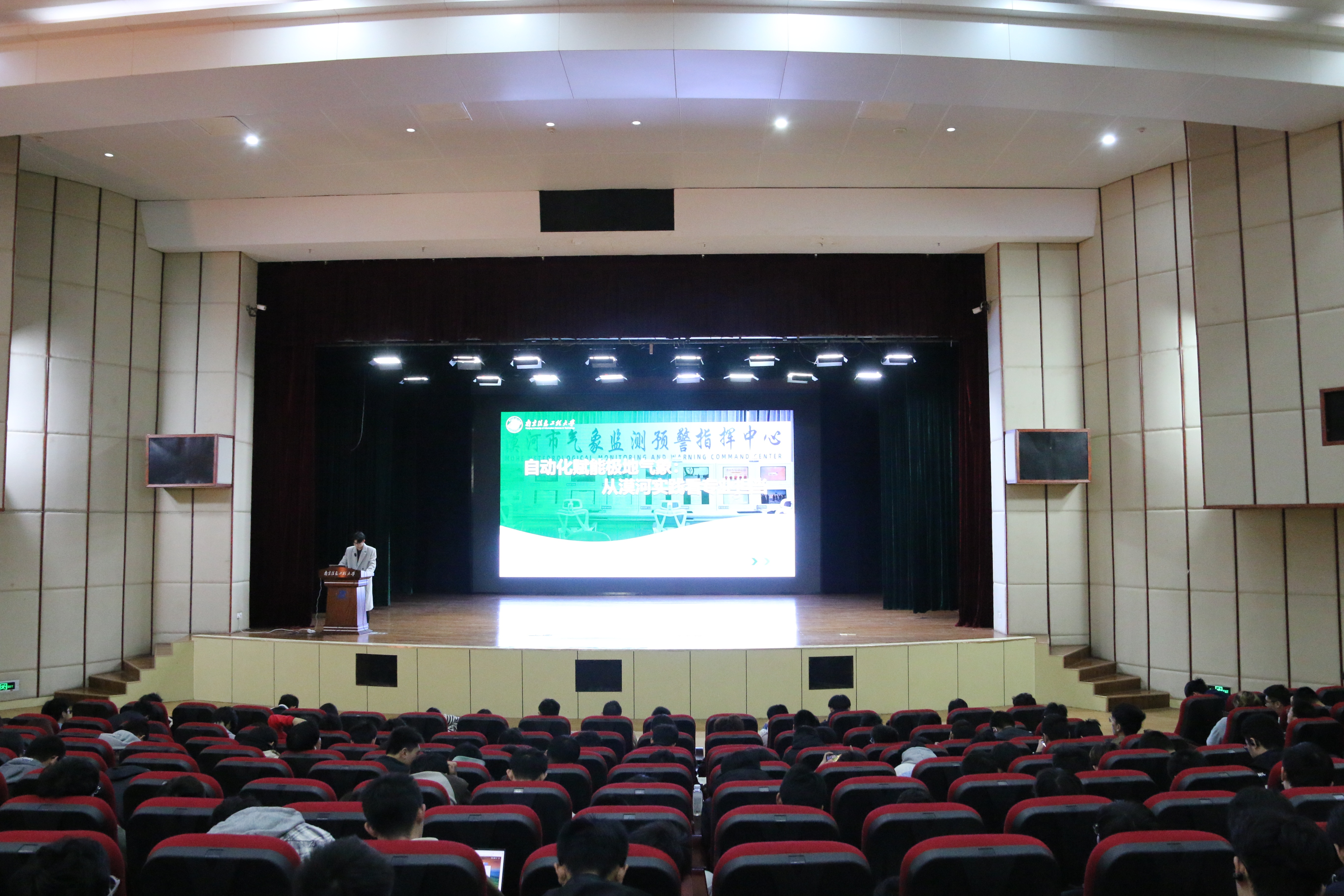 孙张煜以“自动化赋能极地气象:从漠河实践看专业担当”为题作汇报。他分享了漠河气象服务创新成果与实践经验。他结合视频资料解码极地气候特征,介绍自动化技术破解气象观测难题的应用场景,强调自动化是气象服务高质量发展的核心驱动力,可通过机器学习模型实现气象数据向民生服务决策的智能转化,优化农业生产与资源利用、构建灾害防御联动机制。他倡导同学们以此次活动为起点,将奉献精神与创新勇气融入成长,用专业所长在新时代征程中书写青春答卷。