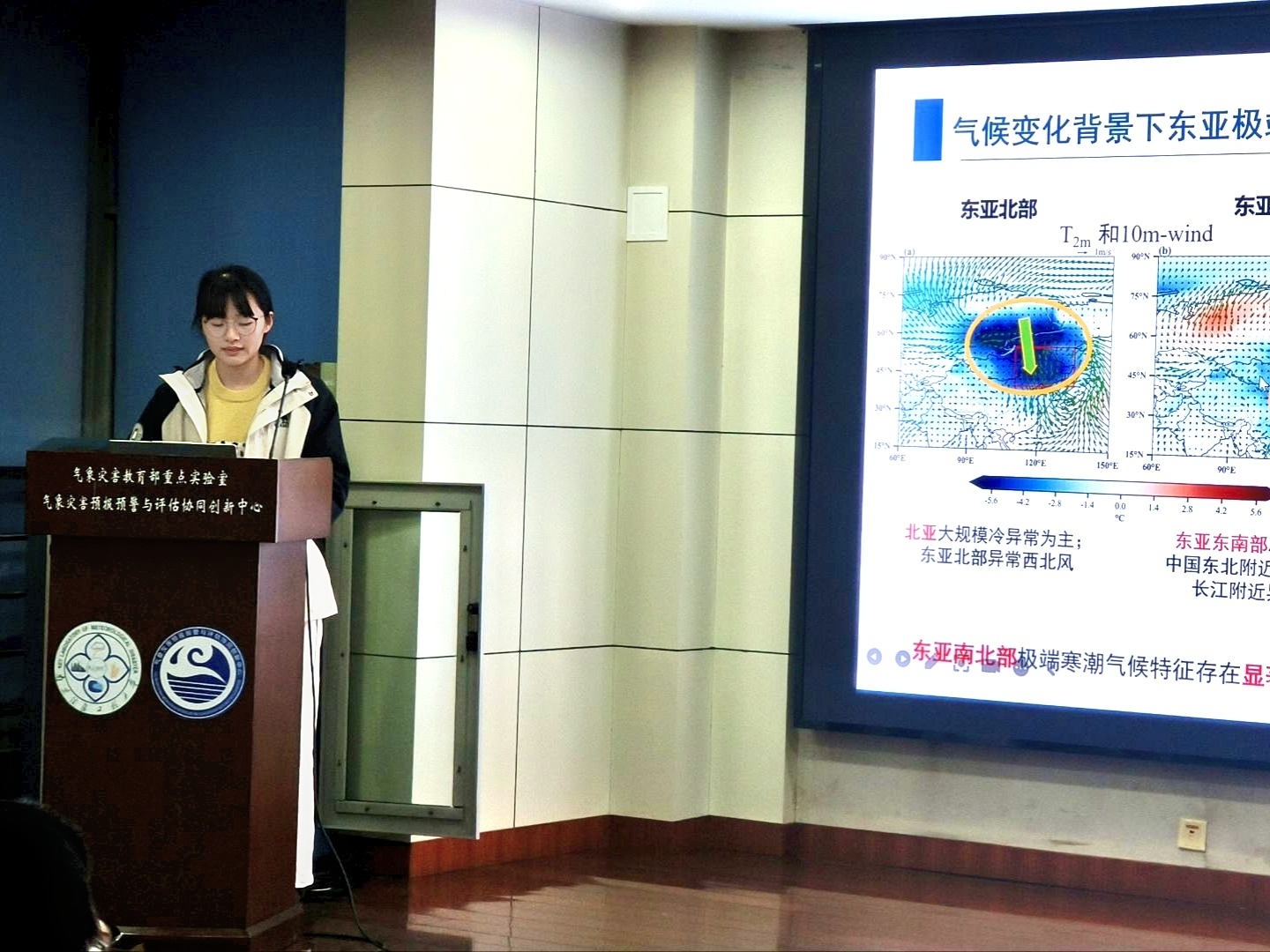 戴永玲在题为《气候变化背景下东亚极端寒潮的变化及相关大气环流异常》的研究中,系统分析了近四十年东亚地区极端寒潮的演变规律。杨春晖则围绕《多尺度时间信号对2024年1月厄尔尼诺与纬向风“非耦合”现象的影响》展开深度解析。