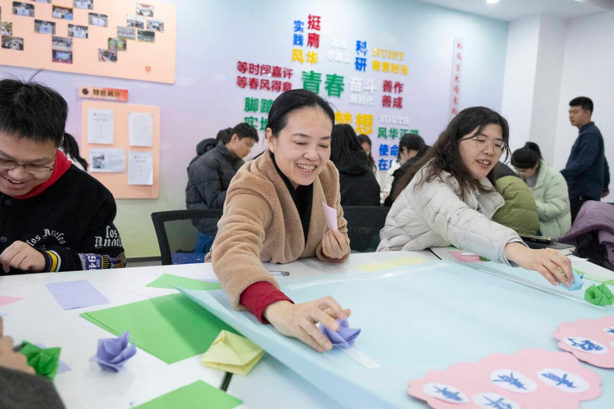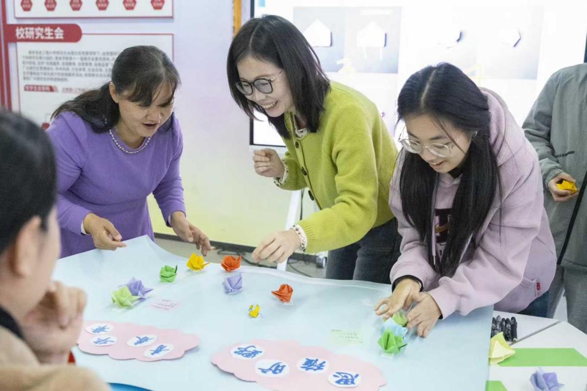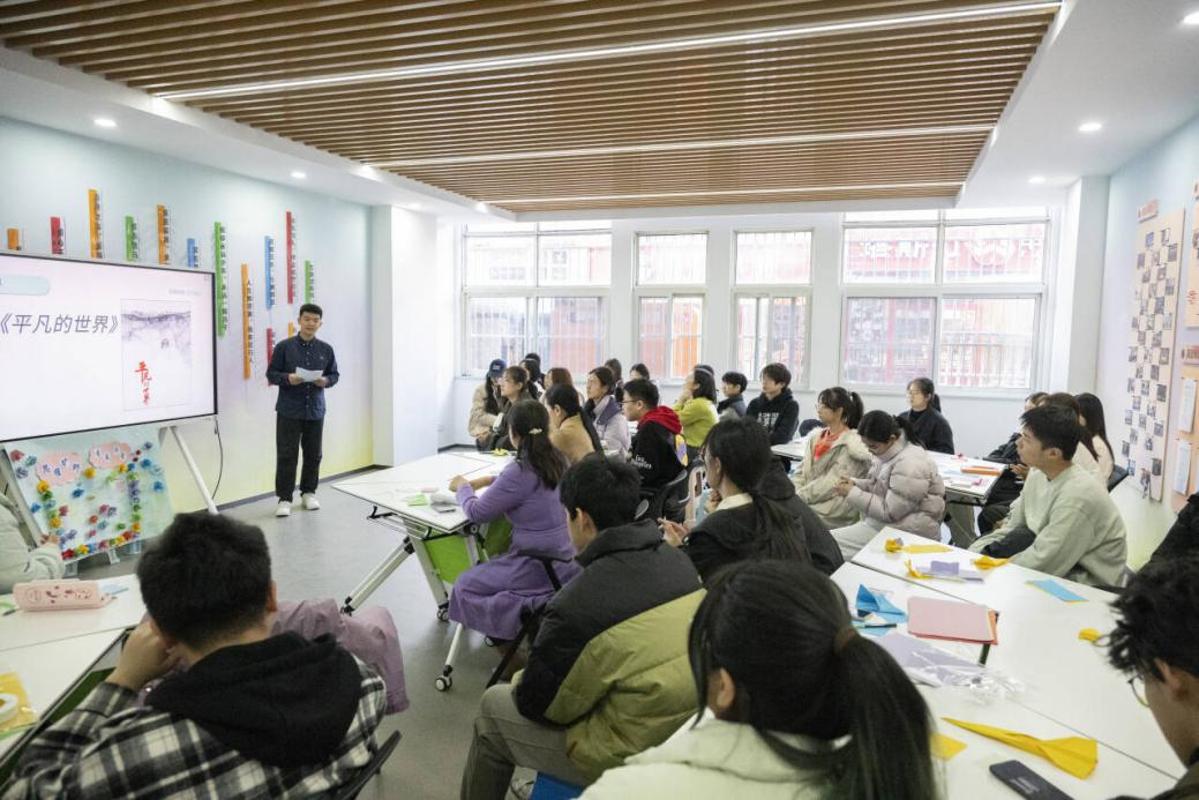 活动现场,师生围坐共折彩纸,借指尖创意碰撞思想;分享书籍,于字里行间对话先贤。互动环节,各位老师耐心解答同学们在书单推荐、学业平衡、人际交往、情绪调节等方面的困惑,为青春航向精准导航。大家将对未来的展望与规划落笔在便利贴上,与折纸作品一同贴在展望板上,师生共聚一堂,以青春之名赴旷野之约,在温暖互动中凝聚成长力量。