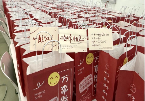 这份礼物承载着来自学院最真挚的祝福,定制的文具套装祝愿学子们在考场上思如泉涌,笔下生花;饱满金黄的橙子取“心想事成”之美意,愿学子们好运相伴,前路灿烂;暖宝宝希望能驱散冬日的寒意,使学子们身心皆暖,专注前行。