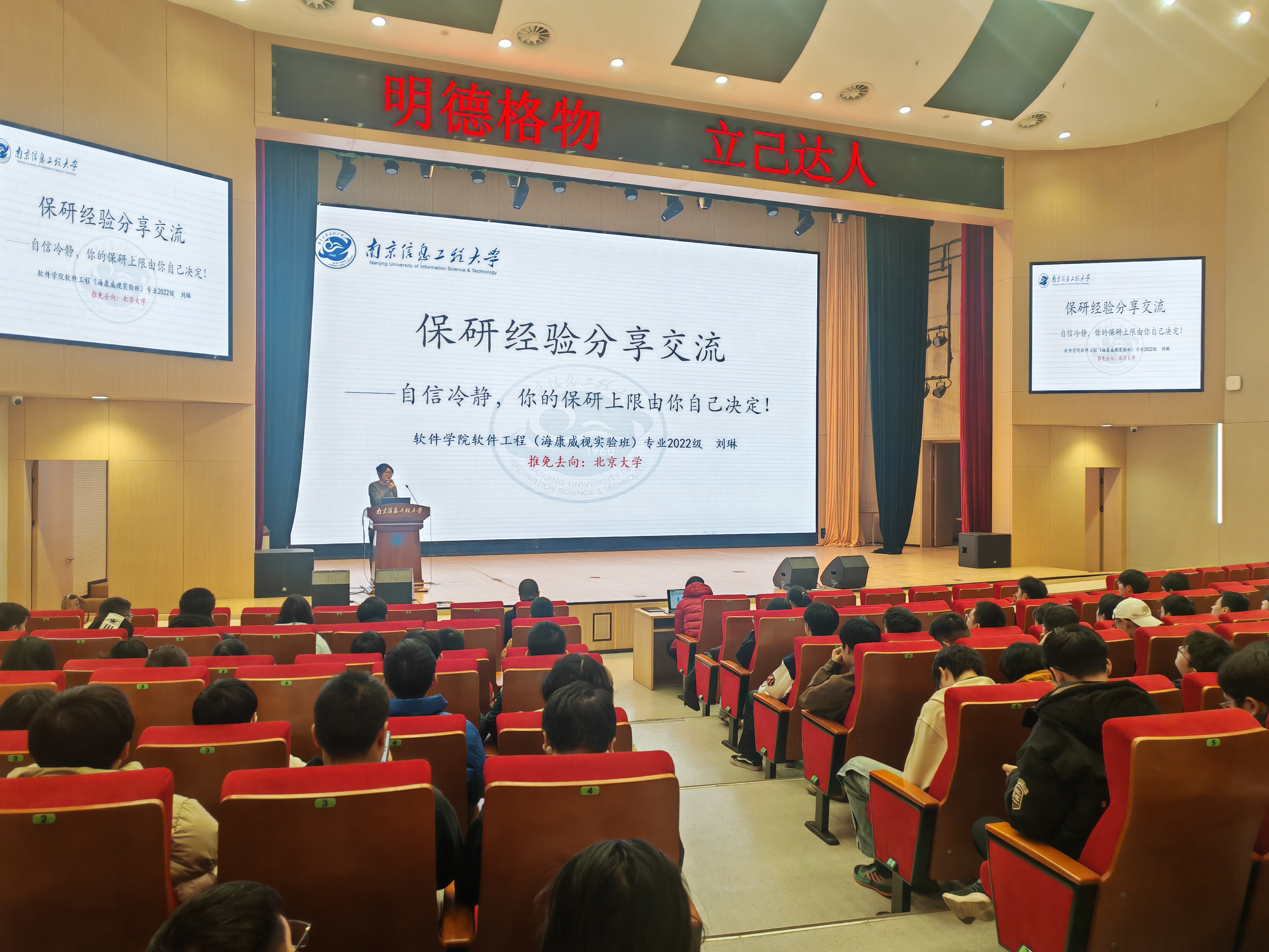 为充分发挥优秀学生的榜样引领作用,助力更多学生明确保研方向、做好学业规划,近日,软件学院在临江报告厅举办了以“自信冷静,你的保研上限由你自己决定”为主题的保研经验分享交流会。本次交流会邀请到软件学院2022级软件工程专业(海康威视实验班)刘琳同学,为学院本科生带来了一场干货满满的保研经验分享。