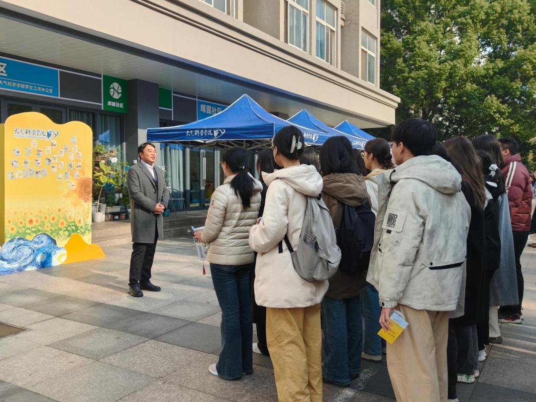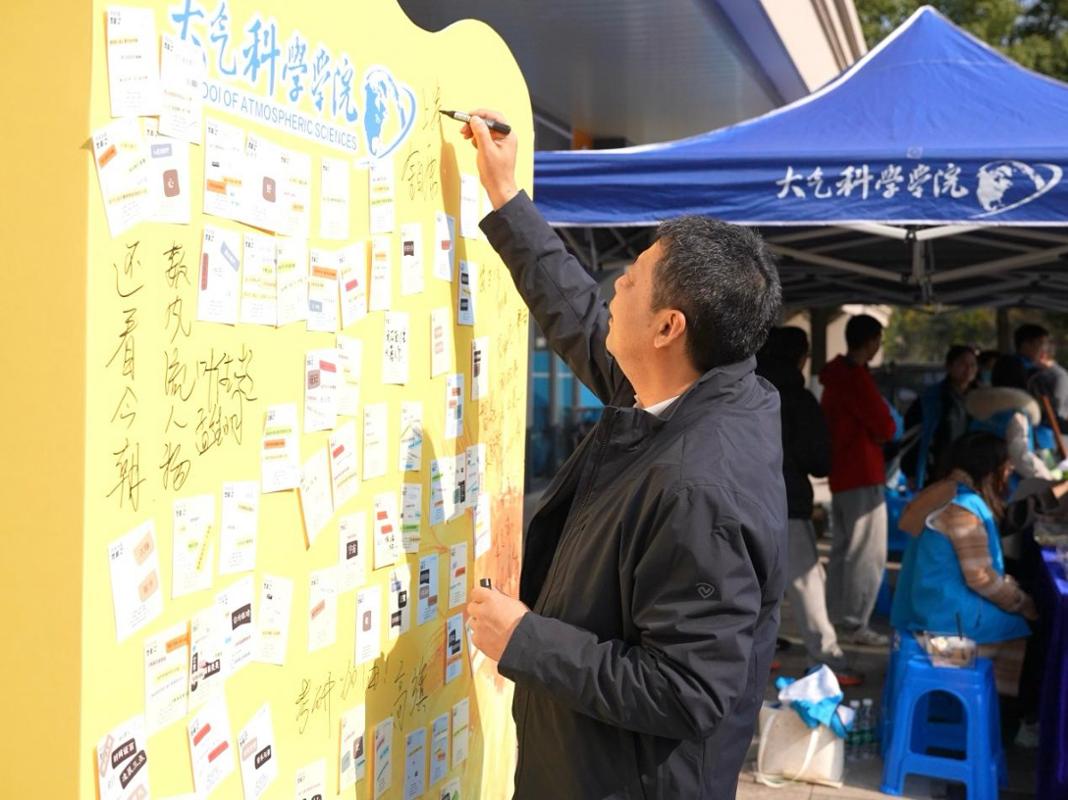 冬日暖阳映照校园,考研冲刺正当时。为帮助2026届考研学子舒缓备考压力、凝聚奋进力量,12月10日,大气院在晖园一站式学生社区举办以“逐梦研途,向阳而生”为主题的“大气·有成”考研助力社区游园会。校总会计师胡明保、副校长金自康及部分校职能部门领导到场助力。大气院院长周波涛、党委书记周淑琴等在校院领导,学院班主任代表、教师代表,全体辅导员齐聚现场,为逐梦学子保驾护航,加油鼓劲。