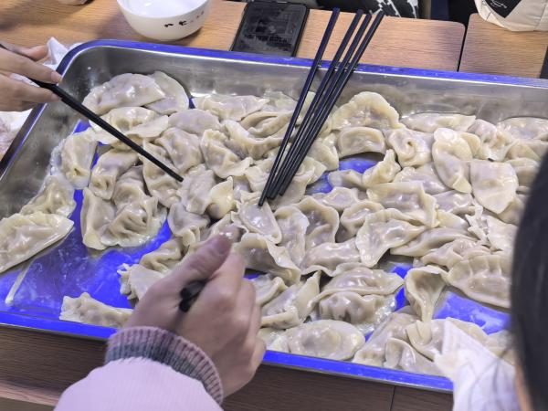 随着一锅锅热气腾腾的饺子陆续出锅,现场弥漫着诱人的香气。同学们迫不及待地围坐在一起,共同品尝自己亲手制作的美食。在这温馨的氛围中,同学们不仅感受到了劳动的快乐与满足,更增进了彼此之间的友谊与感情。
