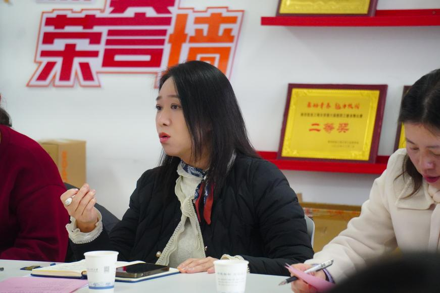校十佳班主任孙冬娇分享了自己的工作心得。她认为,班主任应切实履行工作职责,着力抓好班级建设,特别是把握班委这一关键群体,努力做好学生在学业科研上的引路人,在生活上的知心人。一名合格的班主任要抓住“陪伴、关怀、指导”三个关键点,陪伴学生成长、关怀学生思想、指导学生学业,用心、用情、用爱做好班主任工作。