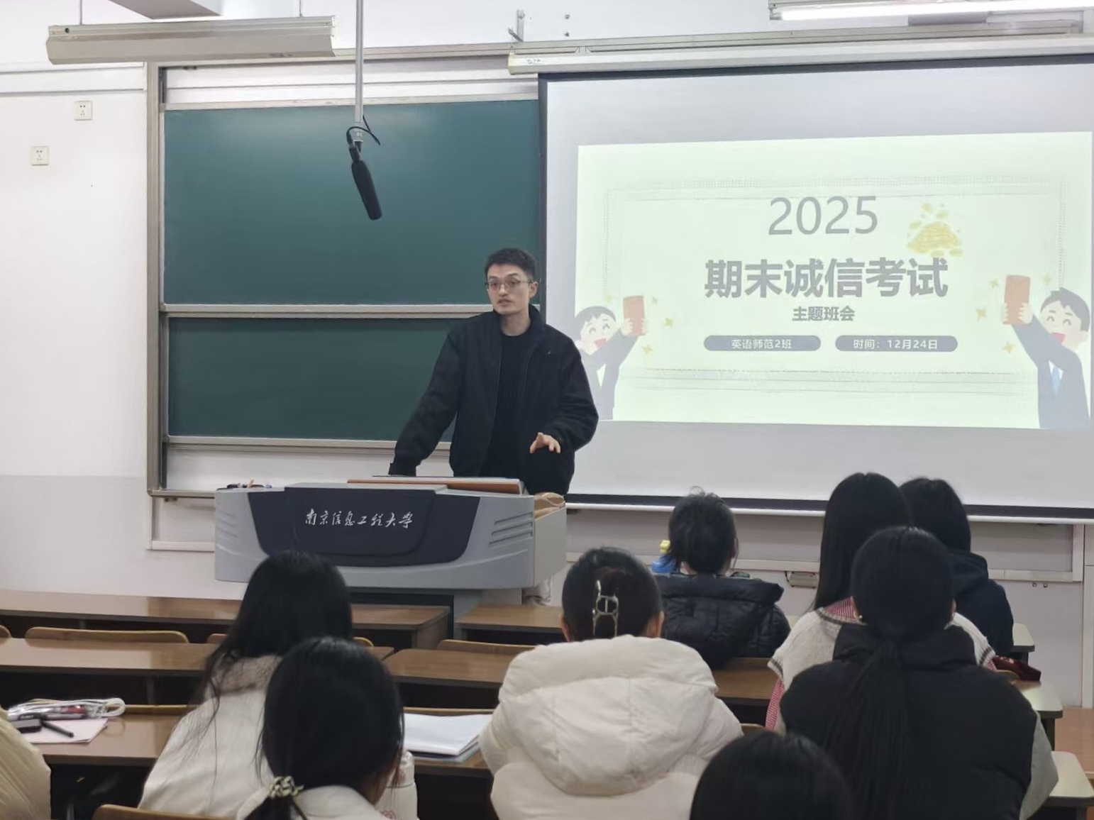学院始终将学风建设融入日常管理与教育引导之中,多项举措持续推进相关工作:课堂秩序常抓不懈,每日“早八”查课制度引导学生规律作息、专注学习;诚信教育贯穿始终,组织全体学生签订诚信考试承诺书,明确纪律要求,筑牢思想防线。针对处于论文攻坚阶段的毕业班学生,开展了学术规范与诚信教育,强调学术研究的严肃性与原创性。此外,各班级在班主任与副班主任的带领下,也围绕学风主题组织了形式多样的班会活动,共同凝聚勤学向上的班级氛围。