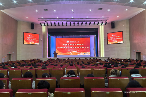 为持续推进学院良好学风班风建设,营造良好的“环科绿梦”育人环境,12月24日,环境科学与工程学院在风云剧场举行2025年学风建设总结表彰大会。院党委书记屈家安,副院长徐德福、胡建林、杨洋,党委副书记兼副院长许敏,各系主任,辅导员与教师代表及学院全体同学参加本次会议。
