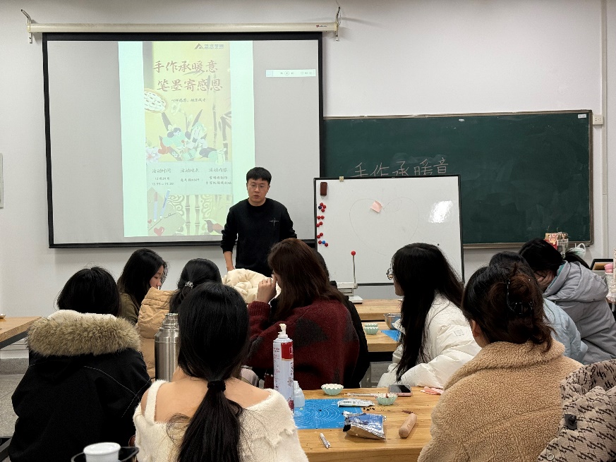 期末备考氛围渐浓之际,为帮助励志学子缓解压力、调整心态,传递温暖关怀,引导大家心怀感恩、砥砺前行,12月25日下午,“手作承暖意,笔墨寄感恩”期末减压主题活动在逸夫楼N509顺利举办。活动由学院辅导员茆彭主持,全院励志学子积极参与。
