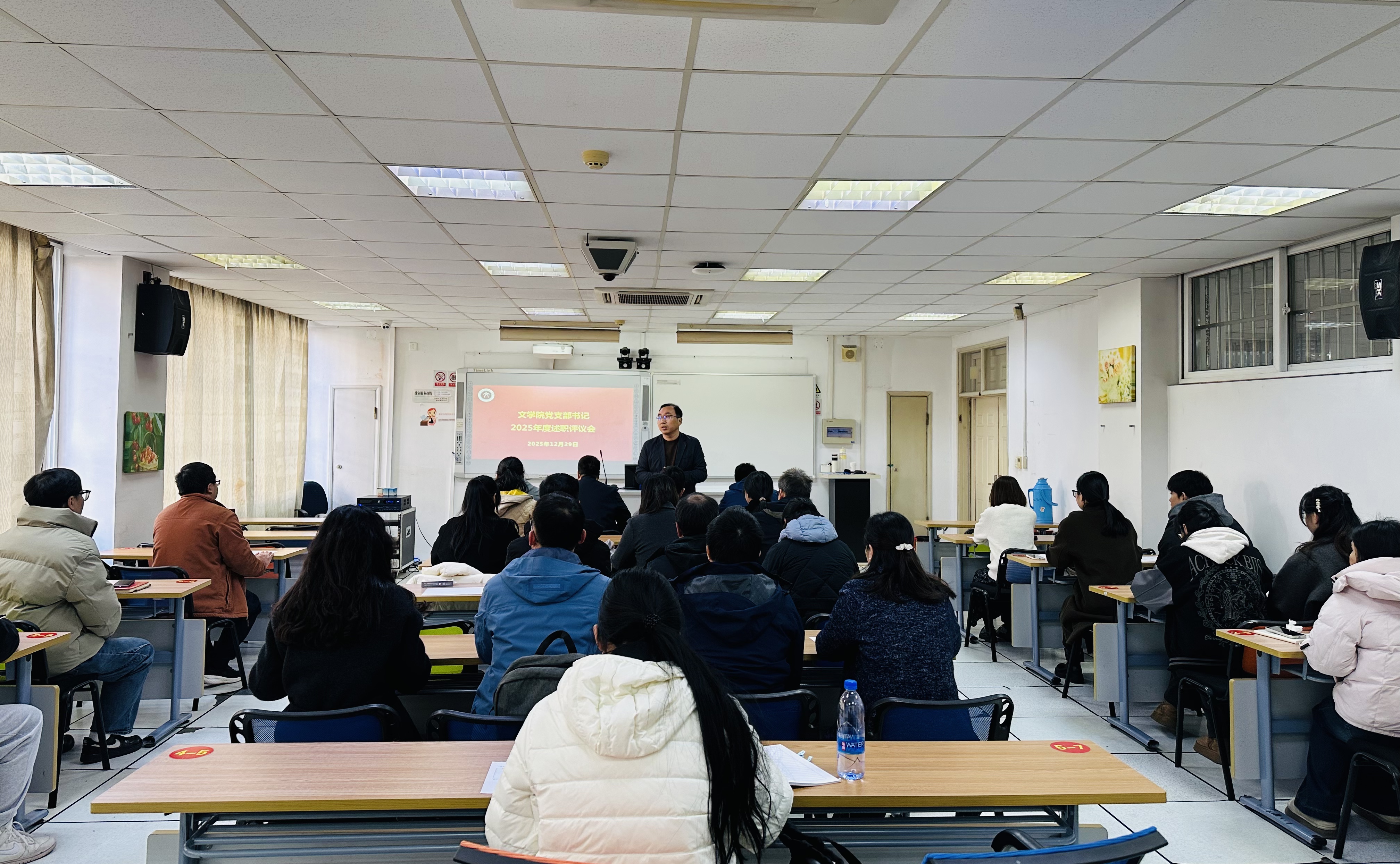 为深入学习贯彻习近平新时代中国特色社会主义思想,学习贯彻党的二十大和二十届历次全会精神,巩固拓展深入贯彻中央八项规定精神学习教育成果,推进作风建设常态化长效化,推动基层党组织和师生党员深刻领悟“两个确立”的决定性意义,坚决做到“两个维护”,12月29日下午,文学院在文C306举行基层党支部书记述职评议会。全体院党委委员出席会议,各党支部书记和委员参加会议,会议由院党委书记郭雨主持。