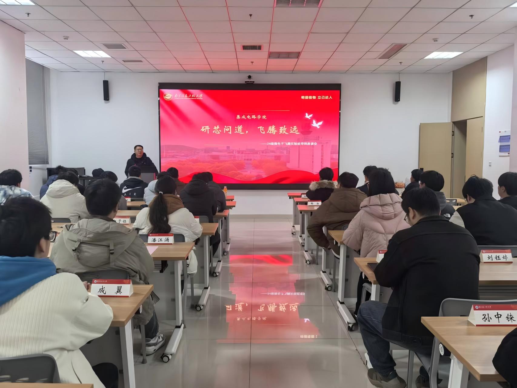为进一步了解学生在学习与科研中的实际需求,优化专业培养方案,12月29日下午,集成电路学院在临江楼A101会议室召开24级微电子飞腾实验班师生座谈会,大家围绕课程设置、科研方向与职业规划展开深入交流。学院副院长张加宏和实验班全体导师共同参会,会议由实验班班主任金红主持。