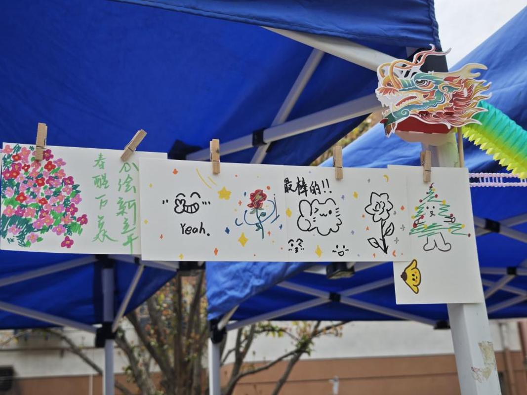 活动现场设置“春绘马年”“狮启新程”“龙抬头启新”三个互动环节。在“春绘马年”区域,同学们用彩笔绘制可爱涂鸦,并在画纸心愿栏写下马年心愿,表达了对未来的美好期许。“狮启新程”环节中,参与者根据教程亲手制作醒狮灯、拉花舞龙,在传统手工创作中收获乐趣、体验传统技艺的魅力。在“龙抬头启新”区域,同学们踊跃参与回答龙抬头民俗知识获得套圈机会,参与套圈游戏赢取龙须酥、小马钥匙扣、新春主题积木等特色奖品。活动现场气氛浓厚,同学们在轻松的氛围中了解传统节日的文化内涵,获得情绪体验与心理调整。