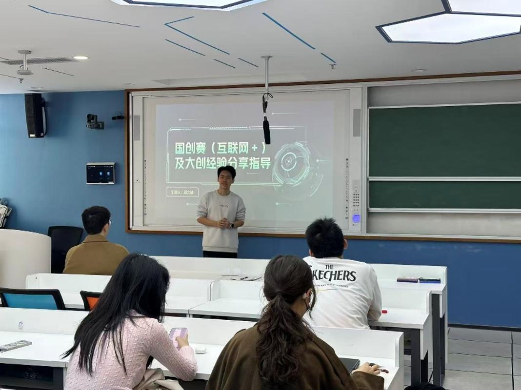随后,2022级人智合作1班赵培喆则系统回顾了自己大学四年的成长路径,围绕学习规划、科研探索、竞赛参与以及未来发展等方面进行分享。他重点讲解了科创竞赛在个人成长中的重要作用,从竞赛方向的选择、团队合作的方式到能力提升的路径进行了全面解析,并结合自身在人工智能方向的实践经历,展示了如何通过持续参与科创竞赛与科研项目逐步提升学术能力与综合素质。