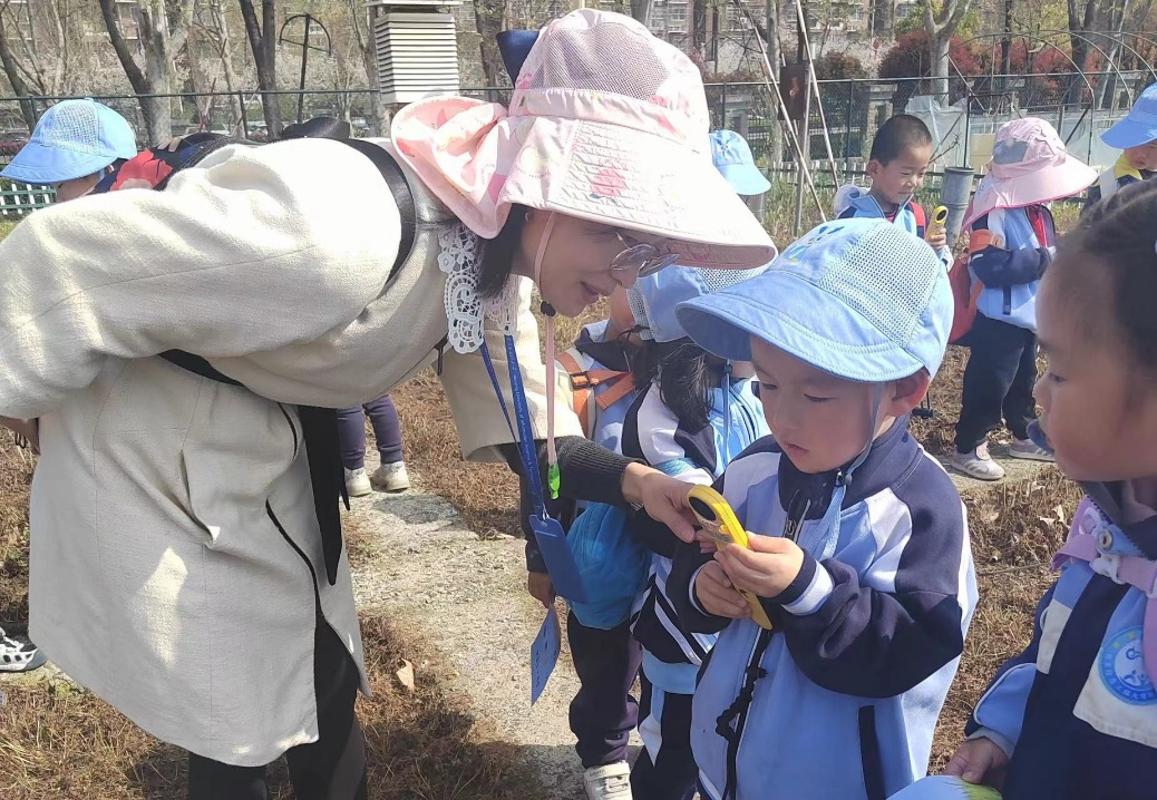 活动现场,科普基地老师以通俗易懂的语言,结合春分和清明节气特点,带领小朋友观察当前农作物生长发育特征、讲解温室效应知识和气象观测等内容。孩子们认真聆听、踊跃提问,对作物发育规律、全球变暖、节能减排等知识有了更多认识。
