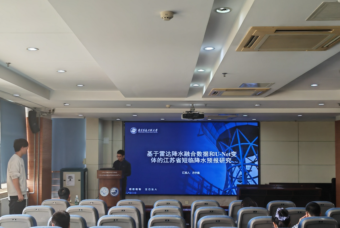 本次报告会中,方宇晨以“基于U-Net及其变体模型的雷达降水临近预报研究”为题,详细汇报了深度学习在短期降水预测中的应用探索。他表示,传统的雷达回波外推方法(如光流法)难以应对降水系统的复杂非线性变化。为此,该研究利用江苏省S波段雷达数据与降水实况资料,以过去的10帧雷达图像预测未来的降水情况,对比分析了基础U-Net模型以及引入注意力机制的Swin U-Net、ViT U-Net三种深度学习架构的预报性能。研究发现,这三种模型在不同的预报时效和降水强度下各具优势:Swin U-Net凭借滑动窗口机制,在1小时短时预报及中强降水区域表现优异;而引入全局注意力机制的ViT U-Net,则在3小时及6小时的较长时效预报中展现出了更强的稳定性和全域建模能力。方宇晨表示,未来将进一步开展模型的轻量化设计,并尝试结合天气形势进行物理过程的解释。