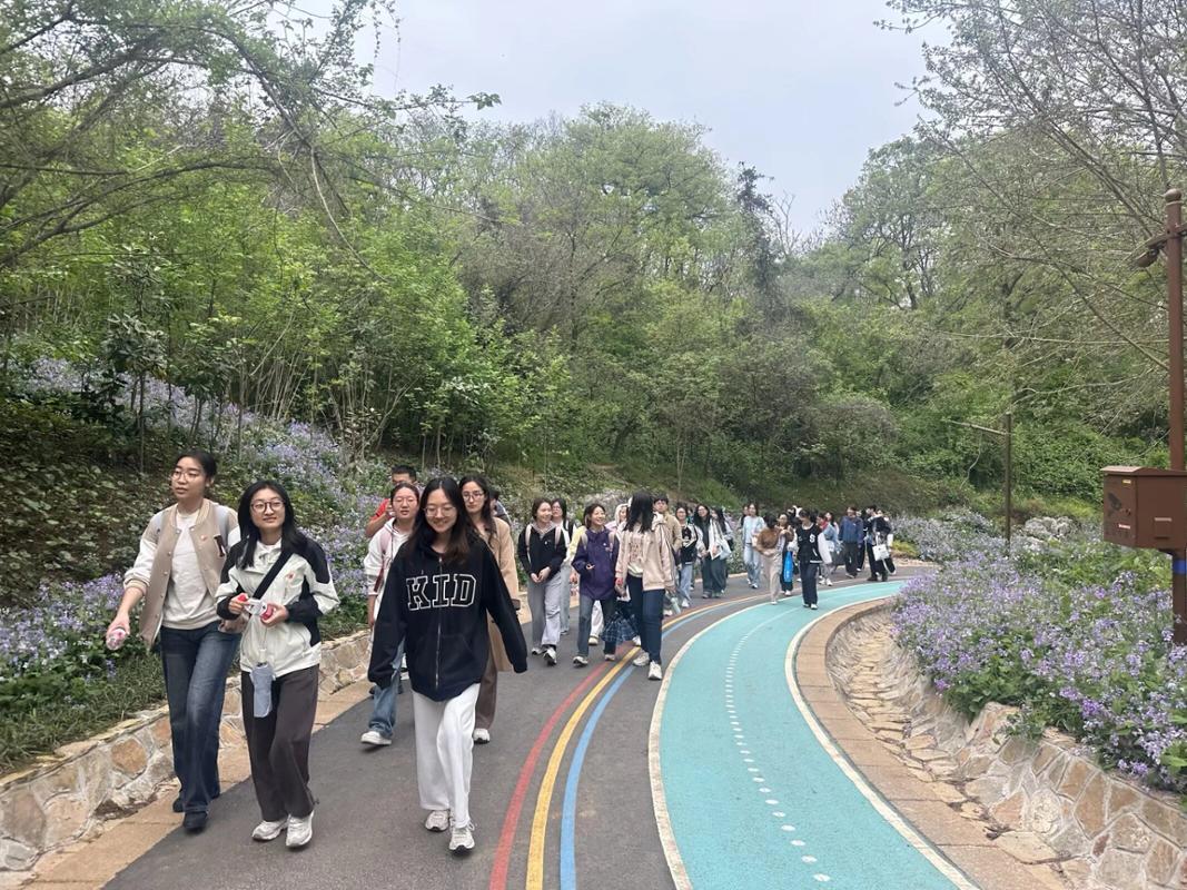 分享会结束后,全体党员在两位党支部书记的带领下,统一前往龙王山景区。在“初心徒步”环节,党员们结伴登山前行,沿途中不同年级的党员围绕学习方法、就业规划展开交流;行至信大驿站,大家集体打卡合影,共同参观学习盘城社区菜园。大家在沉浸式徒步中舒展筋骨、拥抱自然、放松身心,深刻感悟脚踏实地、勇攀高峰的奋斗精神。