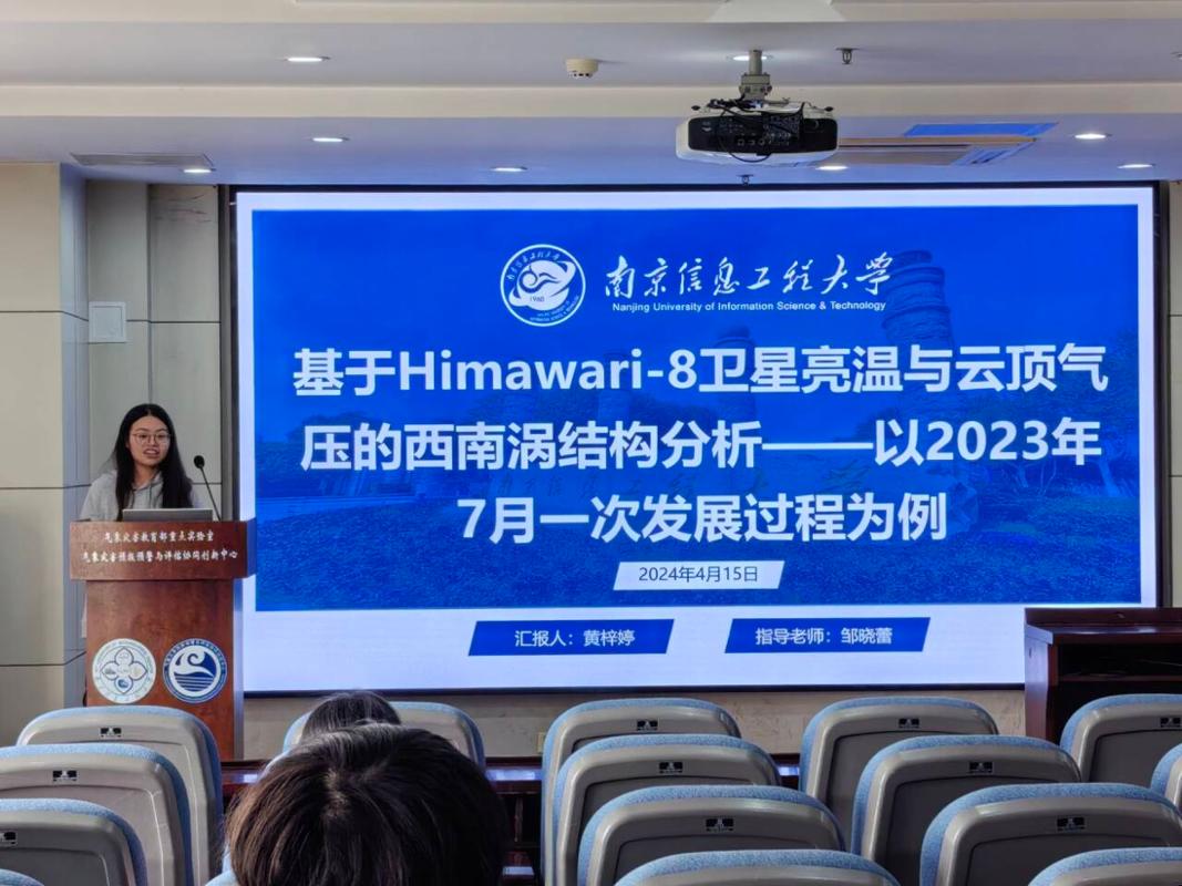 本次报告会由23级黄梓婷进行成果汇报,主题为“基于Himawari-8卫星亮温与云顶气压的西南涡结构分析——以2023年7月一次发展过程为例”。研究针对西南涡这一中尺度涡旋系统展开深入探讨,指出西南涡生成于青藏高原特殊地形与环流条件下,每年4至9月尤为活跃。研究利用葵花8号卫星AHI亮温观测及IMW分析等资料,聚焦其移动路径与对流演变。结果表明,西南涡路径受到副热带高压的显著影响;以2023年7月25日至28日为例,涡旋先向东北后转向东南,伴随对流云团强度先增后减,螺旋结构最终瓦解。定位方面,采用综合位势高度、涡度与风速的方法,需满足相对涡度大于零及气旋性旋转等条件。汇报结束后,与会同学和报告人进行互动交流,在讨论中更进一步加深了对主题的认知。