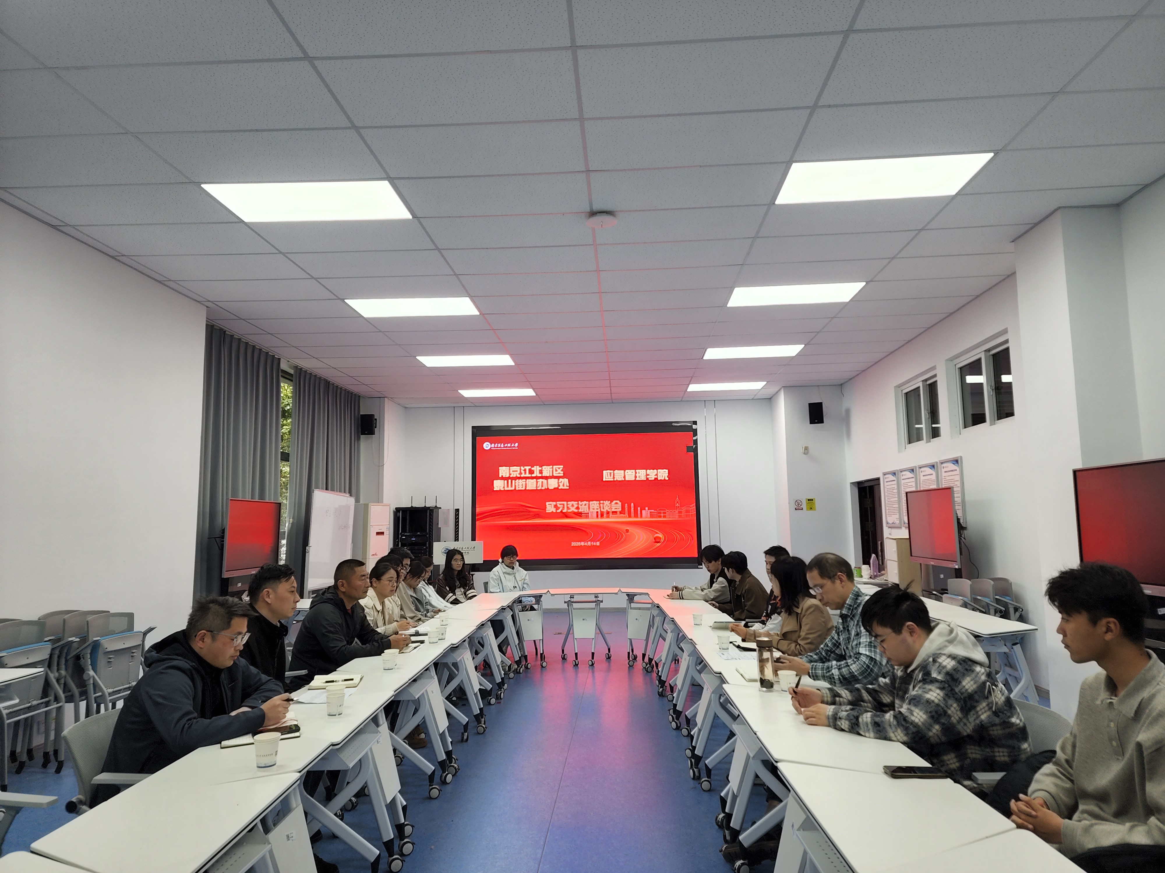 为进一步推动我校应急管理学院与江北新区泰山街道合作共建协议的落实,4月14日,南京市江北新区泰山街道一体化工作站大队长李多国一行来院交流调研。应急管理学院副院长顾湘、公共治理研究院副院长张胜玉及参与实习的同学参加了座谈。座谈会由顾湘主持。