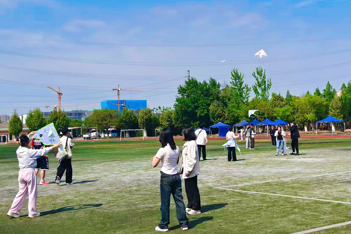 比赛现场气氛热烈,各支队伍凝心聚力、配合默契。在“绘梦逐风”环节,队员们分工协作,在风筝上描绘出五彩斑斓的图案,并将承载着美好期许的风筝放飞蓝天;在“旋舞童真”与“环行逐春”项目中,同学们则在抽陀螺、滚铁环的比拼中重拾童年记忆,锤炼耐心、提炼技巧,现场加油声、欢呼声此起彼伏;“圈定欢喜”项目将现场气氛推向高潮,队员们屏息凝神、相互鼓励,每一次套中都伴随着阵阵喝彩,在互动中拉近了心与心的距离。