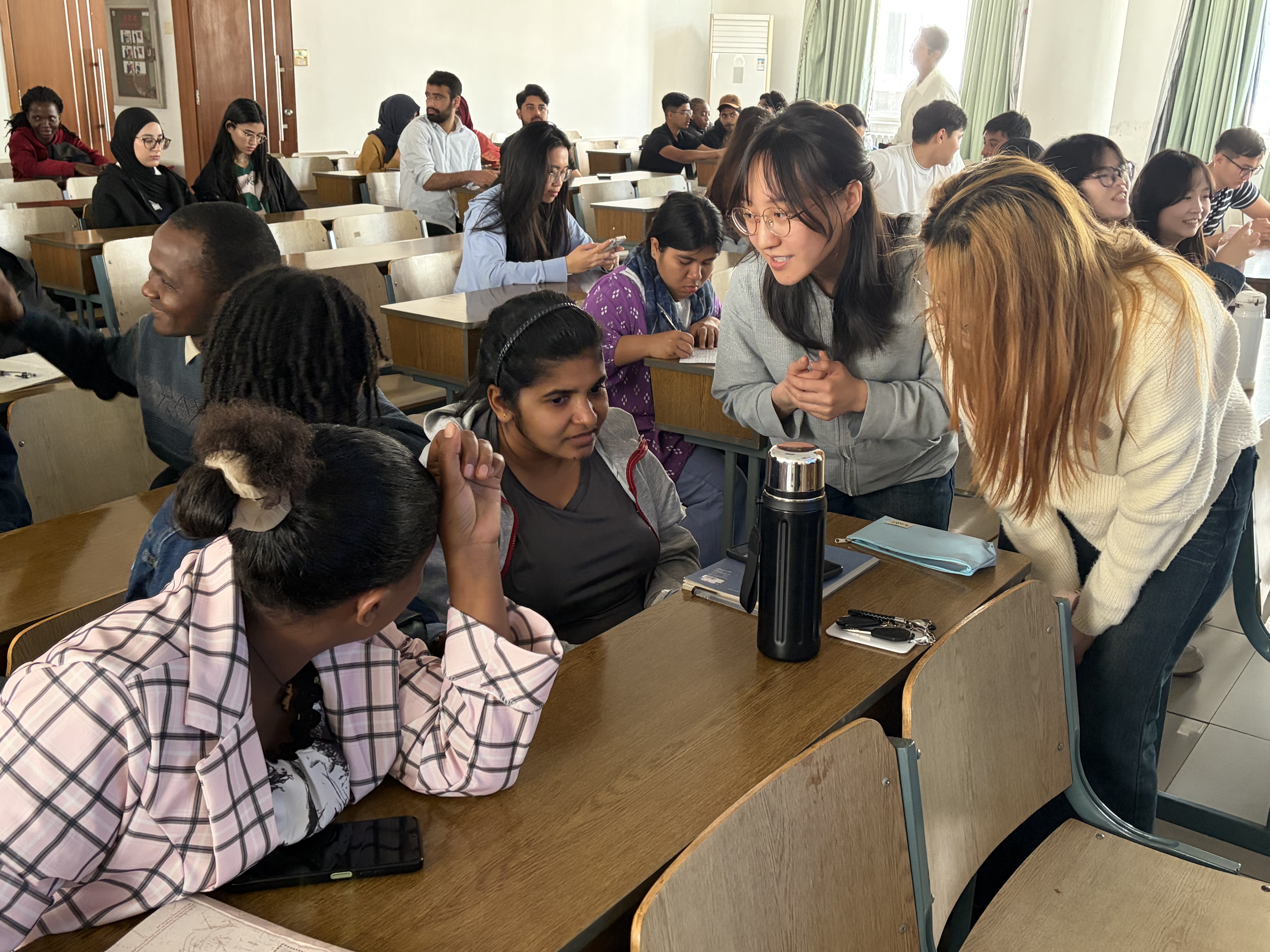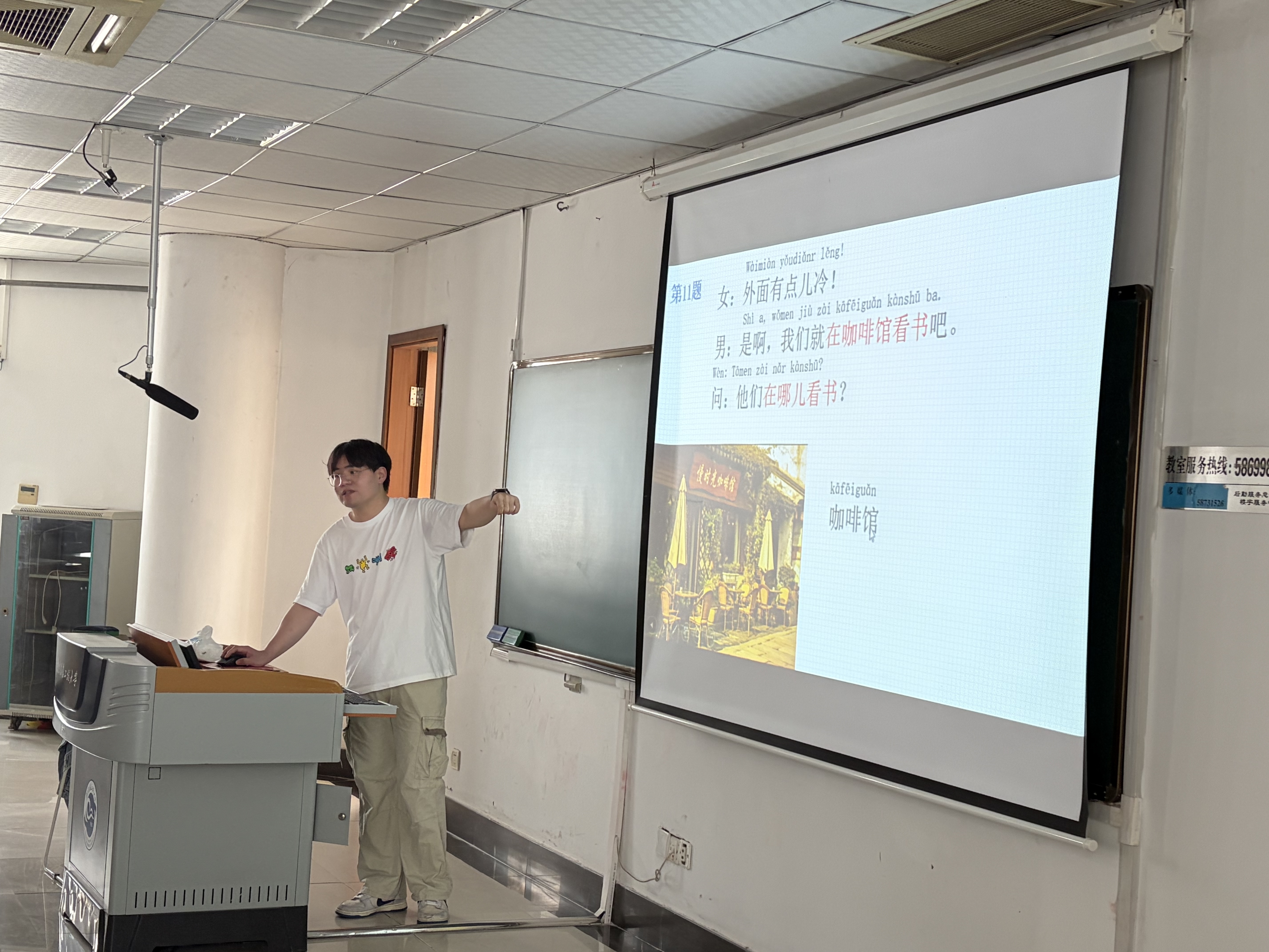 活动伊始,由国际中文教育专业申润泽担任主讲人,面向在校留学生开展中文基础课程专项授课,贴合日常交流、专业学习等实用场景开展教学讲解。同时,支部党员及文研会志愿者帮助留学生开展随堂学习,协助做好课堂辅导与语言沟通保障,助力留学生夯实中文基础,增进中外学生沟通互动。