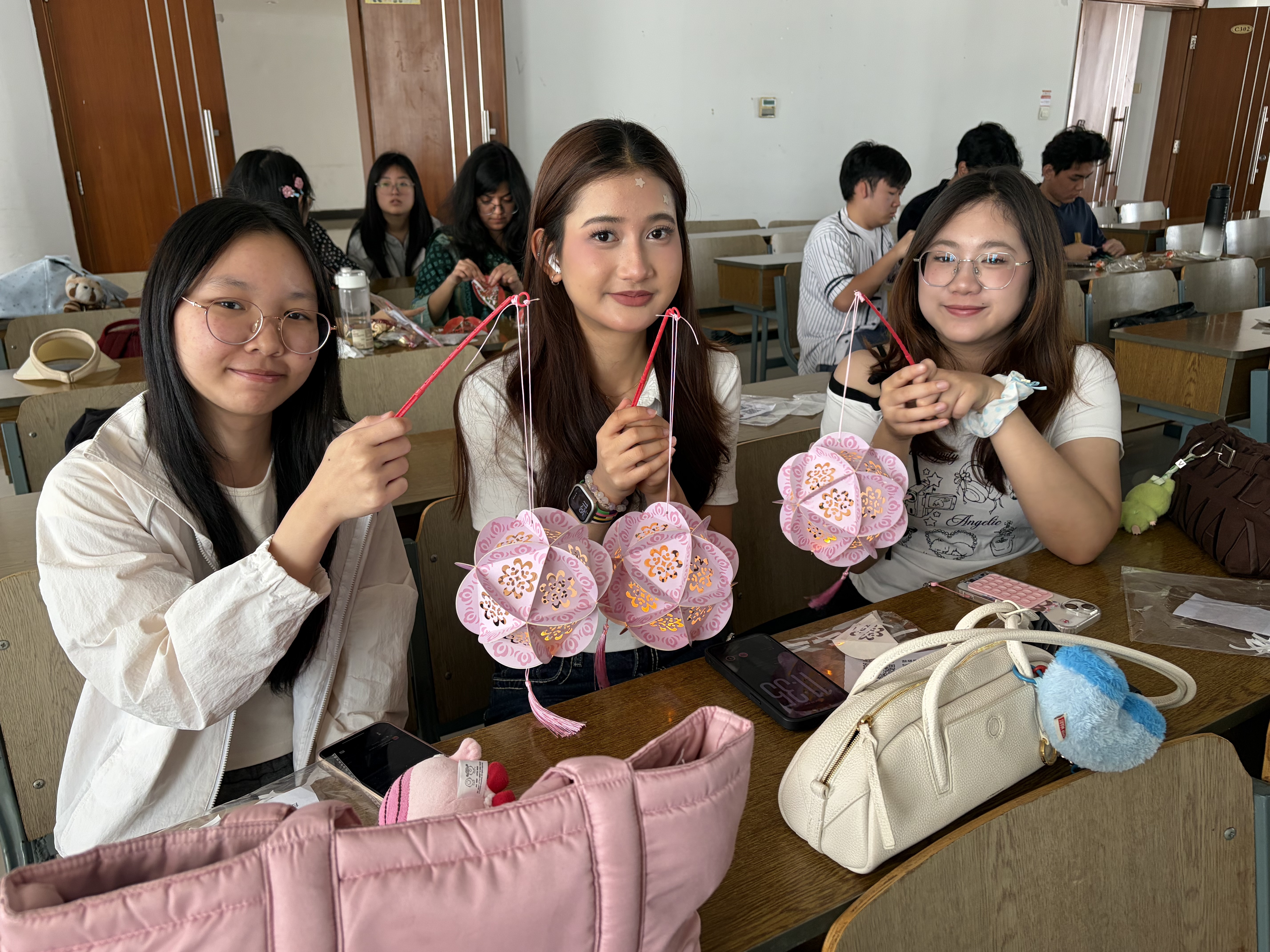 为进一步传承中华优秀传统文化,沉浸式感受传统非遗手工技艺的独特魅力,活动特设传统手工沉浸式体验环节。支部和文研会提前精心筹备竹船、香囊、绣球灯笼三项传统手工体验物料与工具,现场志愿者指导留学生动手制作。大家相互配合、互帮互助,耐心雕琢细节、认真动手创作,一起近距离感受中华传统手工艺的精巧工艺与深厚文化底蕴。简单的手工制作过程,不仅让中外学子沉浸式领略传统文化之美,更增进了彼此之间的情谊,让中华优秀传统文化在亲身实践中润物无声、薪火相传。