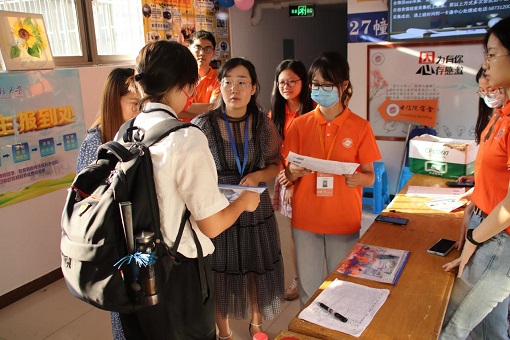 在第一缕阳光穿过薄雾之前,身着橙色院服佩戴院徽的志愿者们便已经在各新生宿舍楼下集合待命,热情的他们在路口举着“电信院宿舍”的牌子为新生和家长引路。在宿舍楼下的新生报到处,志愿者们有条不紊地进行扫码、签到、递送材料袋的流程,耐心回答每一位新生的问题。负责帮助新生搬运行李的志愿者们在宿舍楼跑上跑下,认真负责,穿梭在人群中,他们顾不上自己的汗水湿透了衣衫,只期望着将热情与温暖传递给每一位新生。院领导也肯定了志愿者们的服务,希望他们将这种精神传承发扬。