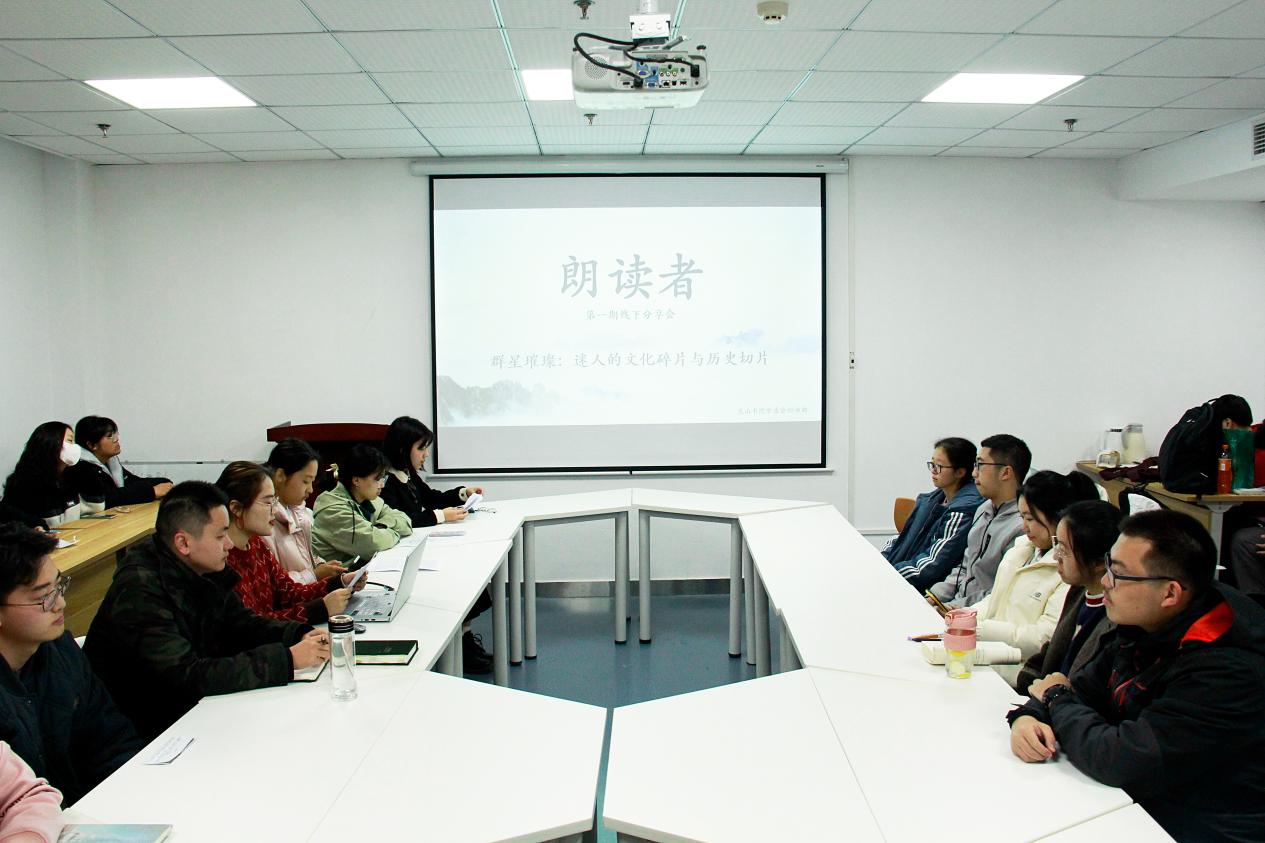 为了丰富同学们的课余生活,促进阅读交流,提升人文素养,龙山书院于12月8日下午在尚贤楼302开展“朗读者”第一期线下分享会——群星璀璨:迷人的文化碎片和历史切片。龙山书院分团委书记王永鹏与30余名龙山学子参加了分享会,分享会由龙山书院学生会秘书部部长齐芸菲主持。