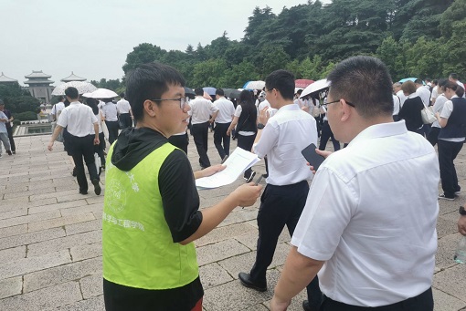 在实践活动的第一阶段,小分队先后参观了侵华日军南京大屠杀遇难同胞纪念馆、渡江胜利纪念馆以及雨花台烈士陵园,追寻红色足迹,回顾了中国共产党在革命道路上经历的风霜雨雪。遇难同胞纪念馆里的旧物、报纸、武器让人回忆起那段岁月,心中久久难以平静,从和平女神像下走过是无尽的哀叹。渡江胜利纪念馆广场上的“千帆竞渡”群雕、庞大的钢制蒸汽机动船,还有陈列在纪念馆里的各种代表着历史的老物件,让队员们心灵经受着巨大的震撼;雨花台烈士陵园高大雄伟的烈士群雕,栩栩如生地再现了九位先烈在就义前英勇不屈、视死如归的光辉形象。队员们还通过发放调查问卷,深度了解不同人群对党史知识的了解程度。