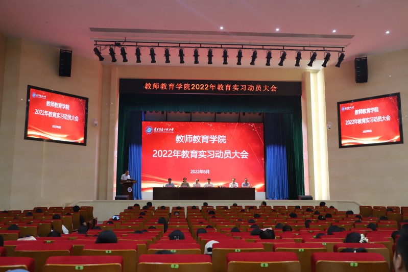 以行践知,奔赴热爱。教育实习是师范生培养的重要组成部分,为确保学院2019级师范生教育实习工作的顺利开展,6月27日下午,教师教育学院在南京信息工程大学风云剧场举办了教育实习动员大会。教务处处长郭照冰、副处长郭雨,实习基地指导教师代表南京师范大学附属扬子中学张洪涛副校长,教师教育学院全体院领导、学院实习指导教师,学院344名本科实习生以及40名研究生实习生参加本次会议。会议由院党总支书记李霞主持。