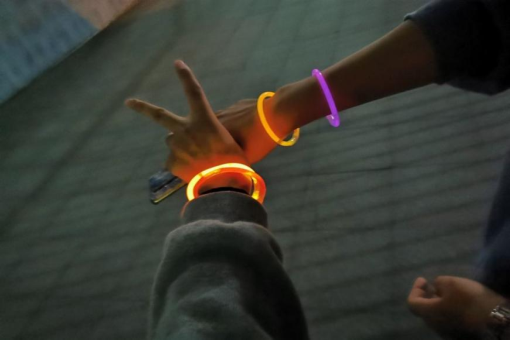 活动提前一周预热,10月15日,通知一经发出,各个年级的同学们踊跃报名,并加入有关活动QQ群咨询。22日当晚,皓月当空,70余名同学手中戴着的荧光环与月光交相辉映,为南信大的夜晚增添了不一样的色彩。