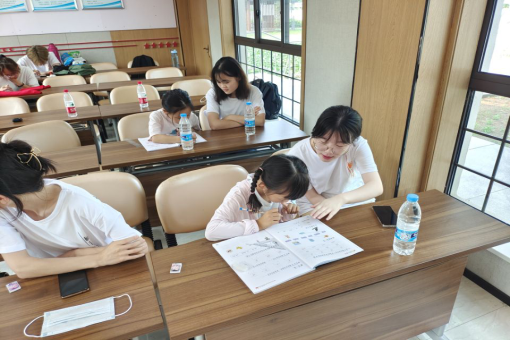 作业共辅导,基础固学识。在进行讲堂之余,志愿者们也专门为小朋友设置了作业辅导的环节。他们会针对小朋友不会或易错的题目进行讲解辅导,也会在一旁监督小朋友认真完成自己的暑期作业,尽可能照顾到每位小朋友在学习和作业上的需求。