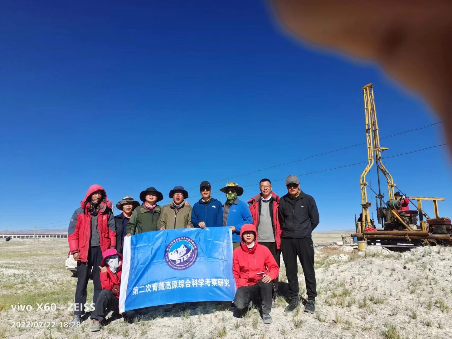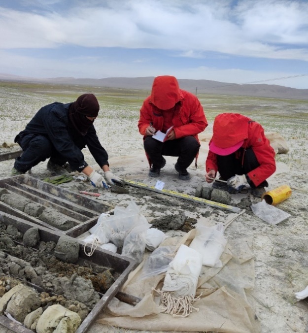 6月23日至7月14日,在完成阿尔金地区的科考工作之后,科考队员经青海格尔木沿青藏公路前往西藏那曲地区安多县色林错流域扎加藏布上游地区开展进一步科学考察工作。对我校2020年在该地区建立的首个多年冻土综合观测场进行设备更新、数据采集和场地维护,并新布设了4套钻孔地温自动监测系统;同时,沿途完成了青藏公路沿线地表形变常规观测、土壤样品采集和参数测量等工作,共收集表层土壤样品100余个。
