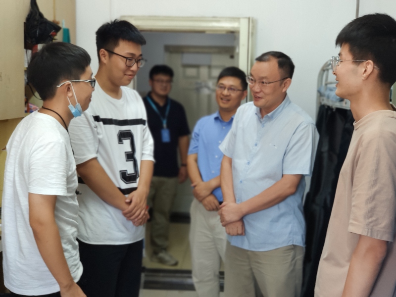 金秋九月,丹桂飘香。人工智能学院(未来技术学院)又迎来了新一批满怀梦想和希望的莘莘学子。9月12日下午,为了解我院学子在校住宿生活情况和帮助学生快速适应大学生活,学院党委书记倪东鸿、院党委副书记兼副院长秦书乐、副院长徐军,学办副主任曹芸,新生辅导员付龙海、吴小泉等走访了2022级新生宿舍,为新生送去关心和问候。