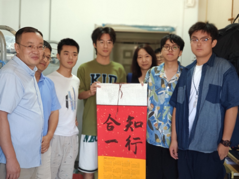 倪东鸿对同学们提出了殷切期望。他鼓励同学们志存高远,坚定理想信念,立志报效祖国;要以攻坚克难的勇气、坚忍不拔的意志和持之以恒的毅力不断提升学业;要有团队协作精神,与人为善,互帮互助,互相促进,共同进步。他还亲自动手,现场示范,指导新生整理内务,打扫卫生,为新同学上了生动的大学第一课。倪东鸿还为每一间新生宿舍赠送了亲笔书写的“致良知”“知行合一”书法卷轴,意在时刻提醒同学们在未来四年的大学学习生活中立大志、明大德、行大善,做到知行合一。