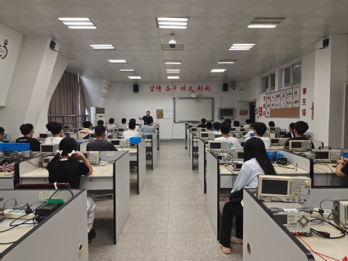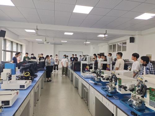 为了增强新生对专业的认同感,激发专业学习兴趣,学院新生入学教育从专业认知教育入手。9月13日下午,五个专业的新生走进实验室,开启专业认知第一步。自动化学院的刘平英和施广全老师,分别带领电气工程及其自动化(中外合作)专业的同学们参观学习了智能控制实验室、电力系统动态模拟实验室、高电压与测量实验室、新能源实验室、继电保护实验室等,深入浅出地为同学们讲解了这些实验室的科学研究成果如何实现转化并广泛应用于人们的生产生活;信息工程(中外合作)、人工智能(中外合作)两个专业同学来到电子与信息工程学院及工程训练中心,参观了微电子综合实验室、光电技术实验室、微电子应用创新与实训实验室、电子设计竞赛实验室等,祁博宇和徐伟老师以电子设计大赛为例,对同学们进行了创新创业教育,鼓励同学们积极参加学科竞赛,提升工程实践解决问题的能力;物联网工程和软件工程专业的同学来到教育部数字取证工程研究中心,陈先意老师给同学们介绍了数字取证的定义及存在的意义,以及中心取得的一系列成果,通过参观更加坚定了同学们学好本专业、探索新知识的信念。