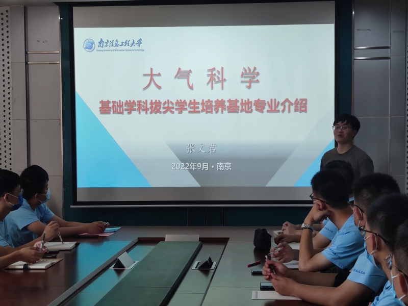张文君首先向同学们介绍了学校和拔尖计划2.0情况。他向新生们讲述了南信大的校史和建设发展成果,与同学们一同回顾了学院的发展历程,并从“四化、三制、二融合”“一个使命、两大基础、三项能力、四类素质”等方面介绍拔尖班的人才培育理念。张文君还鼓励同学们从基础做起,积极提问,学会思考,勇攀科研高峰。接着,在李青青老师的主持下,同学们依次进行了自我介绍,畅谈自己的兴趣爱好及对未来的愿景,增加了解,增进感情。最后,老师和同学们讨论了“拔尖”一词的含义,经过热烈的探讨,同学们一致表示将努力朝着“基础更扎实一点、眼界更开阔一点、心智更成熟一点、思想更活跃一点”的方向不断努力,努力成长为未来气象事业的领军人才。