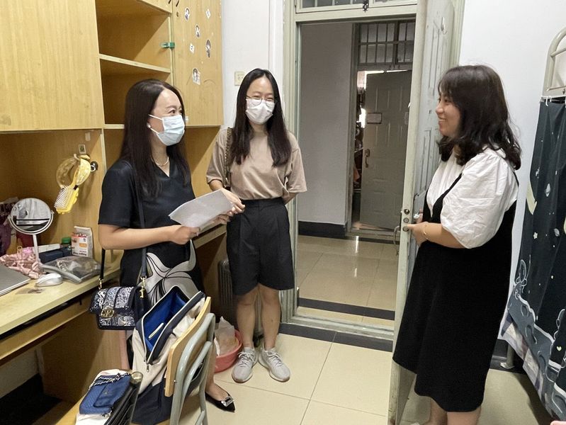 新生顺利入住后,在学院党委书记张明菊的带领下,学院副院长兼党委副书记朱文镇、学院副院长徐骏、辅导员、班主任代表前往学生宿舍看望新生。老师们对新生的到来表示热烈欢迎,并与他们进行了亲切的交谈。老师们详细了解了新生入学后住宿、生活等方面的情况,并对新生提出的问题作出了耐心细致的回答,嘱托同学们与舍友好好相处,团结友爱,共同学习进步。“来自哪里呀?”“一路上顺利吧?”“宿舍的同学都认识了吧?”“到大学里,首先要学会的就是要会看通知;同学们之间要相互理解、相互包容、相互帮助”。一句句问候,一个个嘱托,透露的是学院对新生的关心,彰显的是学校的温情。