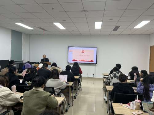 为深入学习贯彻党的二十大精神,进一步加强对入党积极分子的培养和教育,切实增强荣誉感、责任感和使命感,法政学院于11月16日下午在阅江楼118开展了以“端正入党动机 争取早日入党”主题的中级党课培训。本次培训邀请学校关工委副秘书长范天森老师担任主讲,学院50余名入党积极分子参加。