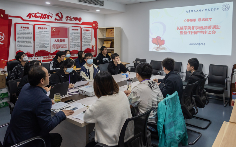 为帮助新生进一步熟悉国家和学校的各项资助政策,了解新生入校以后在学习和生活上遇到的问题,引导新生心怀感恩、励志成才,长望学院于11月23日下午举行了冬季送温暖活动暨新生困难生座谈会。学院副书记、副院长王康宏,学办主任高婷婷,分团委书记赵魏丹,负责资助工作的老师倪慧以及2022级全体新生困难生出席会议,会议由倪慧老师主持。