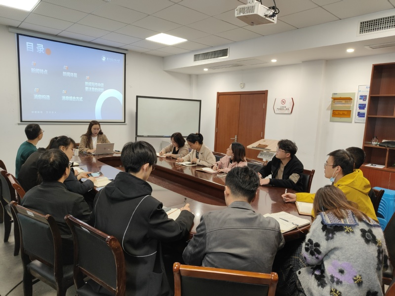 培训会上,林雯紧扣学院新闻宣传工作必备的知识技能,从新闻特点入手,介绍了校园新闻常用的新闻体裁,着重解析了“消息”这一新闻体裁的相关知识体系,并结合自身多年从事新闻宣传工作的实践经验,援引大量的经典案例,根据“消息”的内部构造模块化剖析,直观形象地呈现出“消息”的写作过程。最后,林雯分享了自己的新闻写作感悟和体会,强调了新闻写作的规范性,号召与会师生一定要提高新闻宣传的思想站位,增强责任心,守正创新。