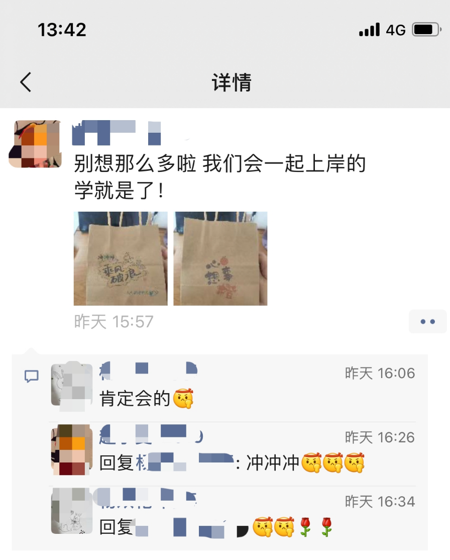 大气院一贯高度重视毕业生升学工作,将考研作为推进学风建设和毕业生高质量就业的重要抓手,竭力全方位、多措施地为学生提供良好、舒适的备考环境;同学们考研热情高涨,考研录取率也逐年上升,稳定在48%左右。此次考研慰问活动,让同学们感受到学院的关心关怀的同时,更进一步激发了大家的斗志和信心,大家纷纷表示将珍惜学校学院提供的各项资源,认真复习,不辜负学院的培养,努力考上自己心仪的院校!