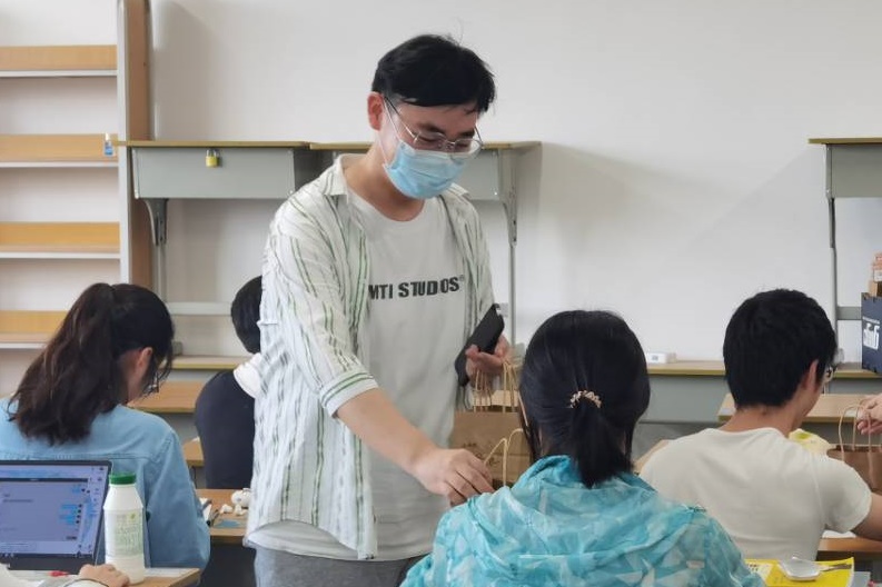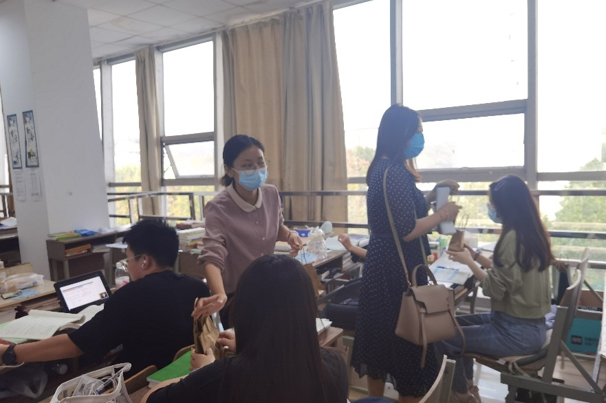 9月下旬,随着考研报名工作的启动,2019级本科生也迎来了考研复习最为白热化的阶段。为帮助学院全体同学进一步坚定考研信心,缓解紧张情绪,大气院策划并开展了“乘风破浪,心想事成”考研学生慰问活动,为全体考研同学精心准备了寓意满满的“福袋”,为紧张备考的同学加油鼓劲,送上学院的专属祝福和温暖。29日下午,学院党委副书记、副院长张皓与2019级全体本科生辅导员一同走访了考研专属教室,为同学们送“福袋”、送关怀。