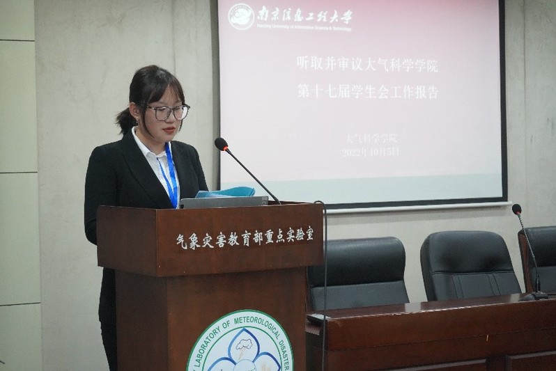 大会在庄严的国歌声中正式开幕,全体代表听取并审议了南京信息工程大学大气科学学院第十八次学生代表大会筹备工作报告、学生代表资格审查报告、学生会工作报告。学生会在院党委的正确领导和院团委的悉心指导下,围绕着“以生为本”的理念,推进学院学生会工作务实、有效、顺利开展,成效显著,得到了代表们的一致认可。